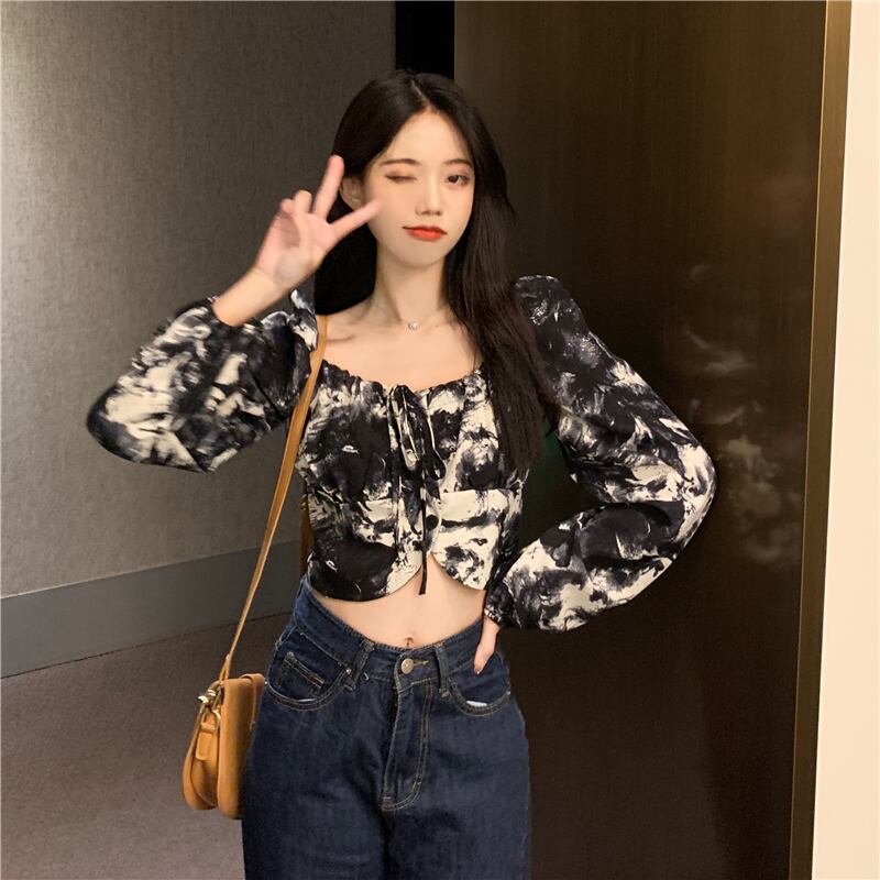 ショートトップス スプリングオフショルダー 大人ガーリー スウィート キュート カジュアル 春物 ピュア スクウェア パフスリーブ ウエスト SPM82991729163