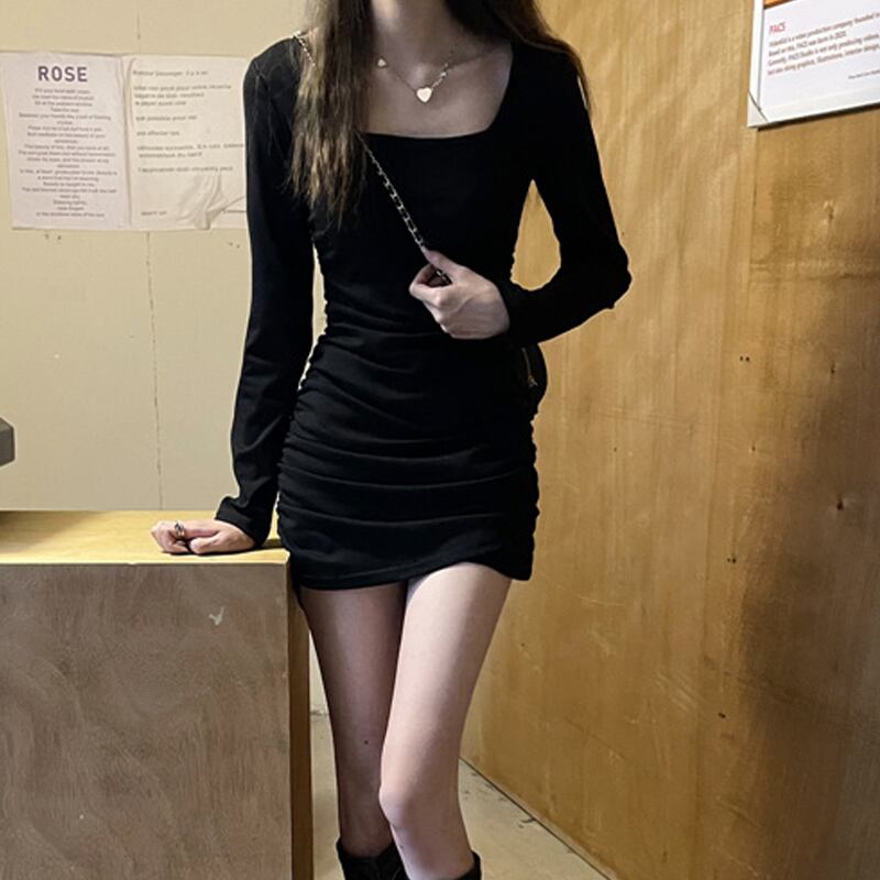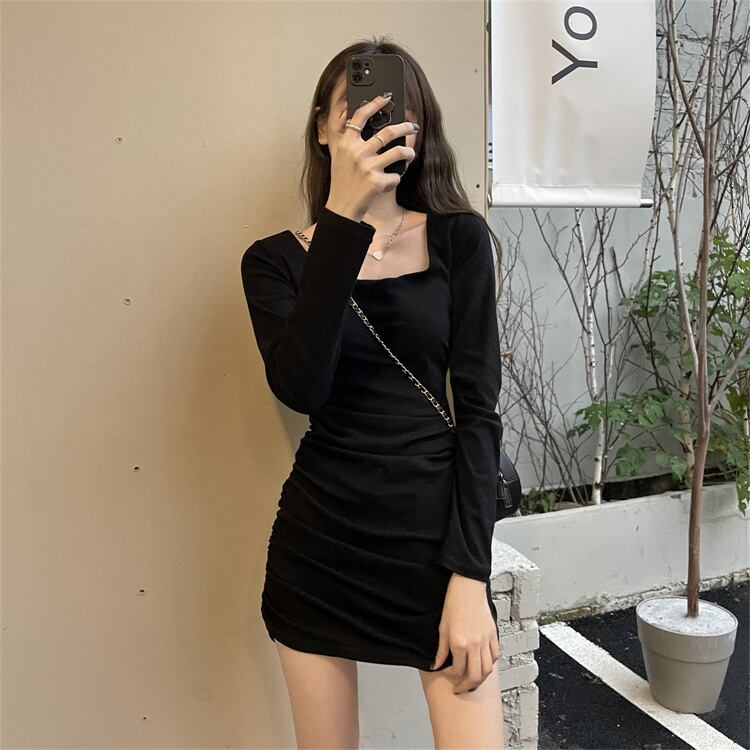 長袖スリーブワンピーススプリング秋物ブラックスリムショートスカート ロング 大人ガーリー スウィート キュート カジュアル 春物 オータム SYJ42947948611