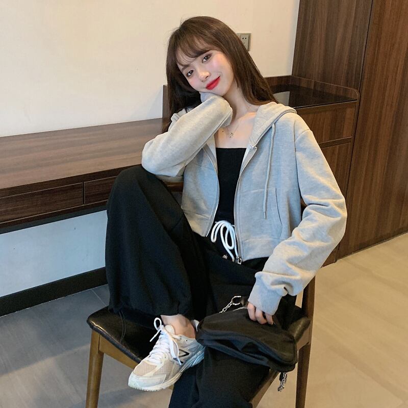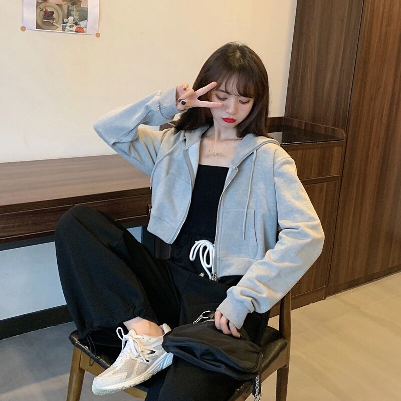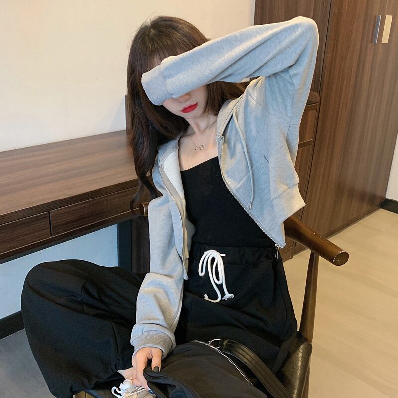 グレーフードセーター スプリング秋物薄手コート ショートトップス ロング 春物 オータム 長袖 SPM75277124646