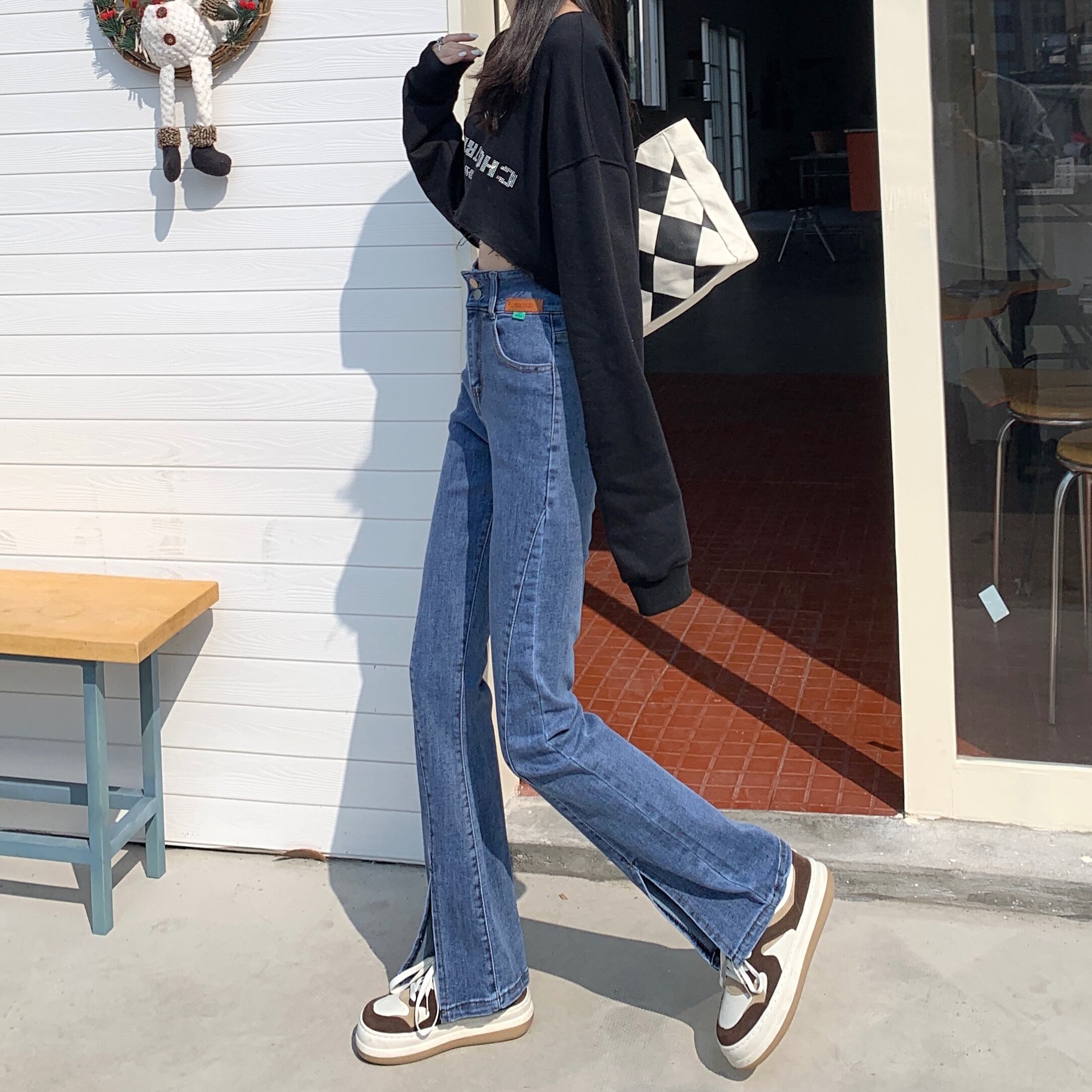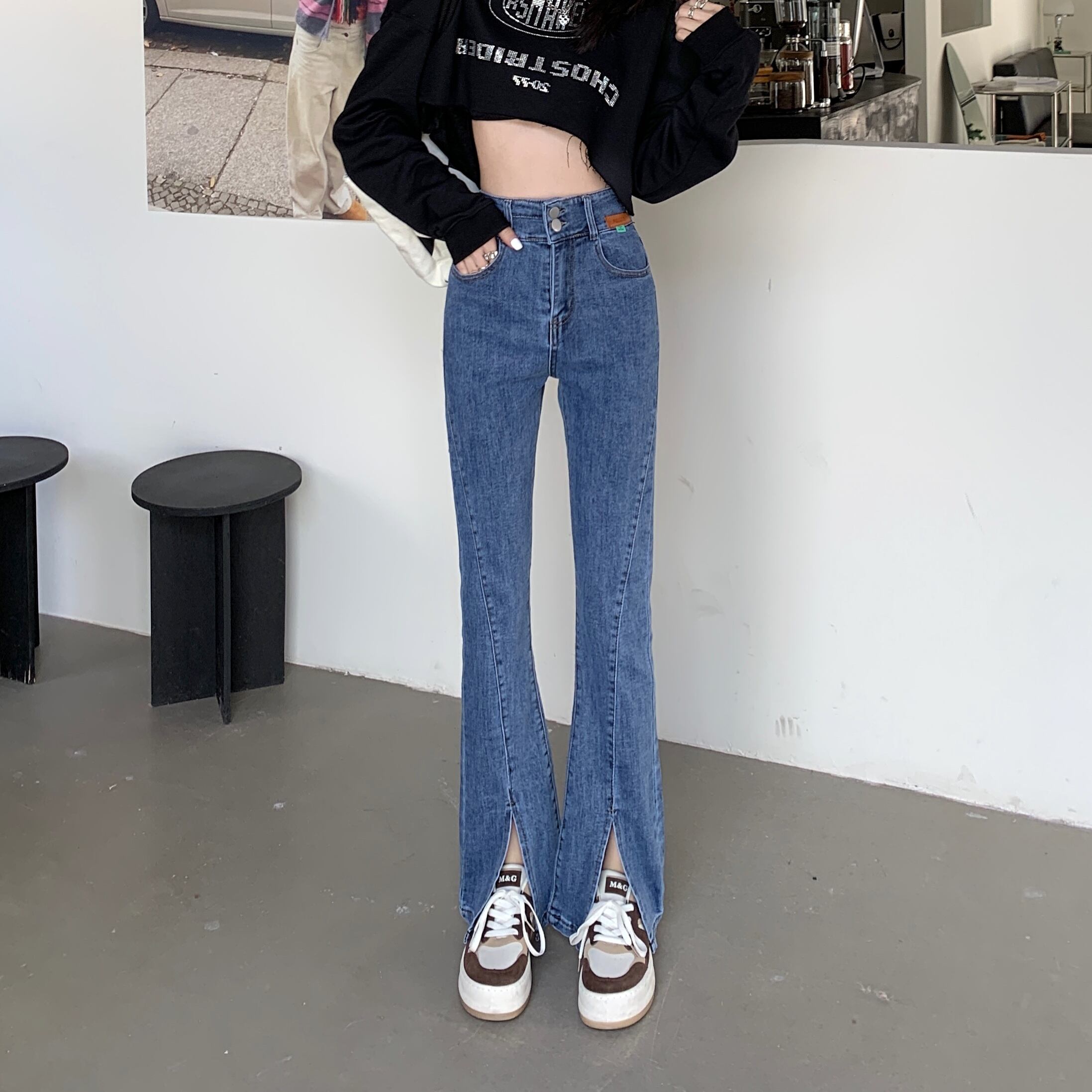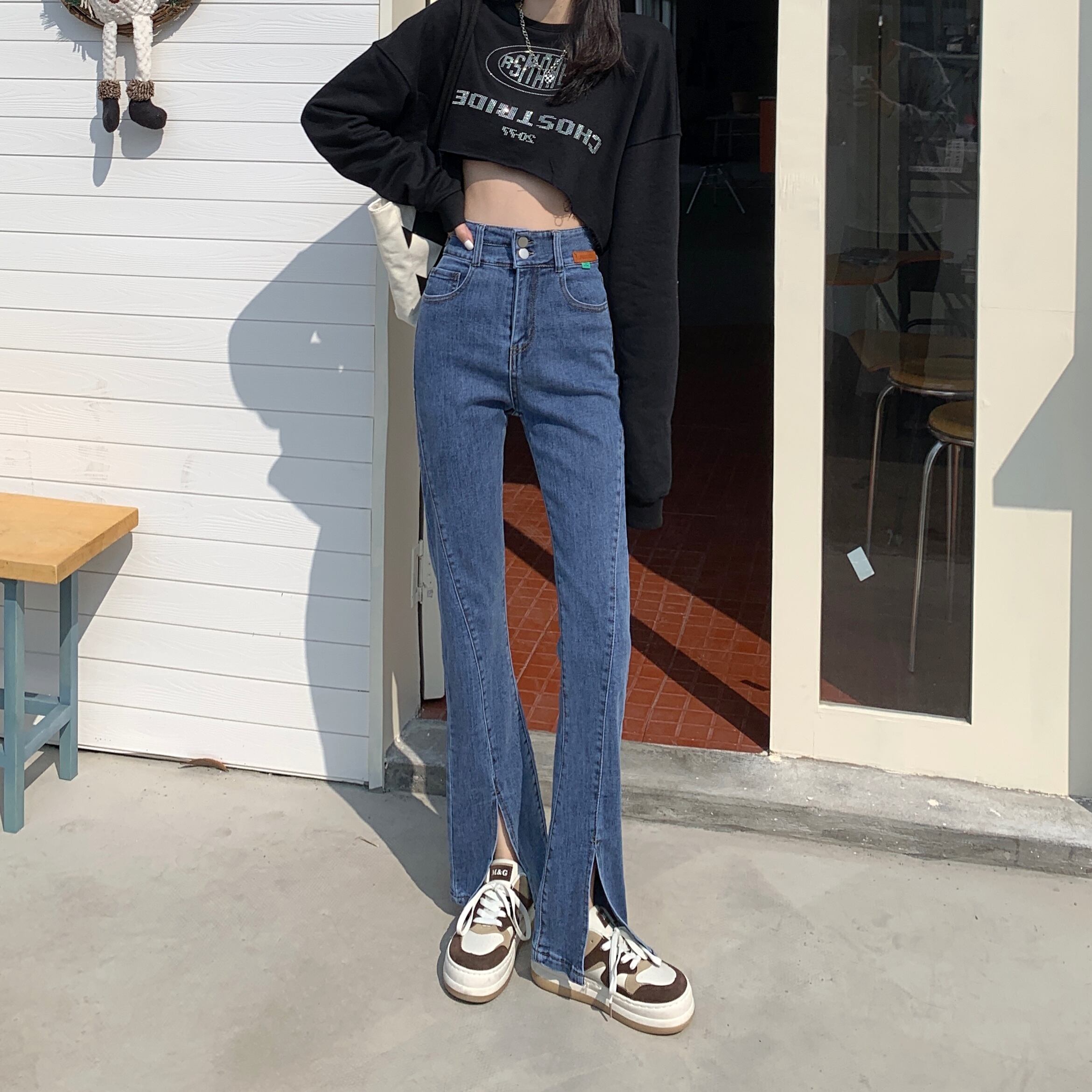 スリットジーンズ スプリングパンツ ハイウェストウェストスリム レッド 春物 ウエスト SYJ63918064244