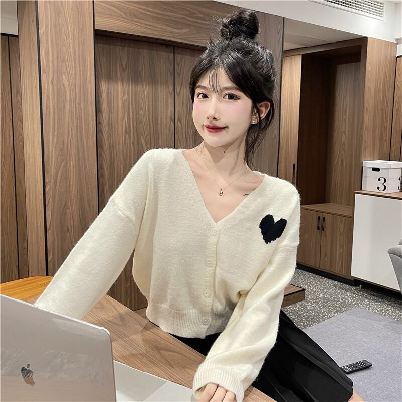 ニットショートトップス Vネックセーター スプリング韓国ファッションスタイルコート カーディガン 大人ガーリー スウィート キュート カジュアル 春物 SPM64934456557