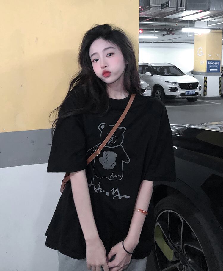 ブラックTシャツスプリングルーズトップス NEW 春物 SPM98629172297