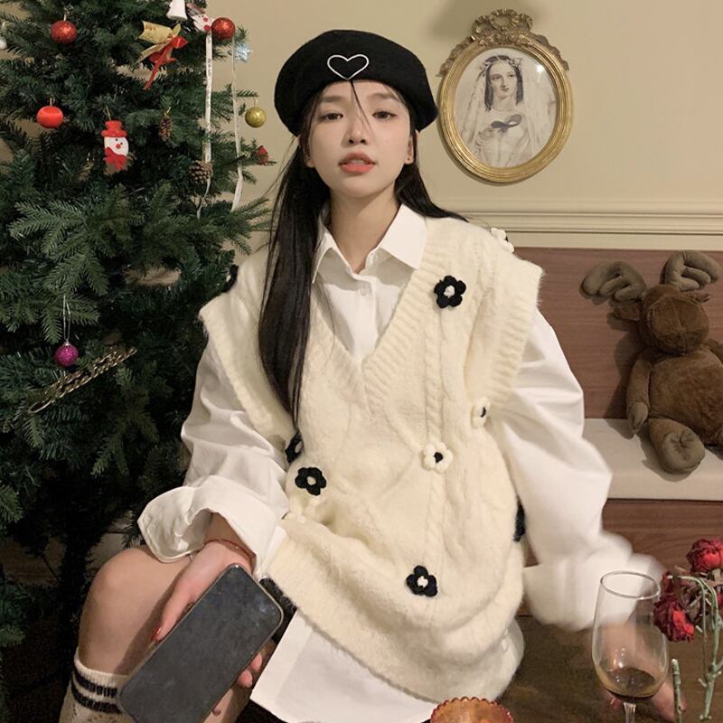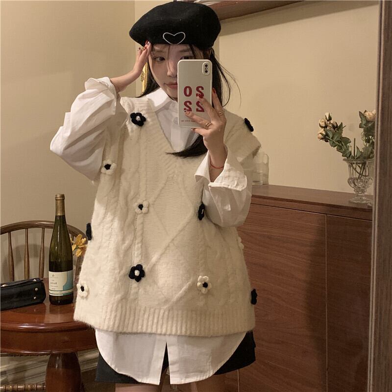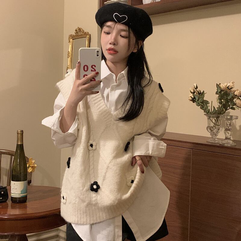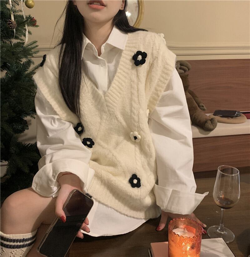ニットスプリング秋物Vネックセーター シャツ セット 春物 オータム SPM43260538764