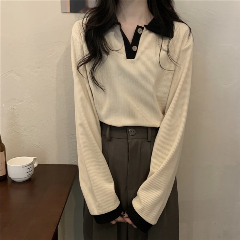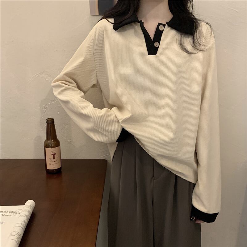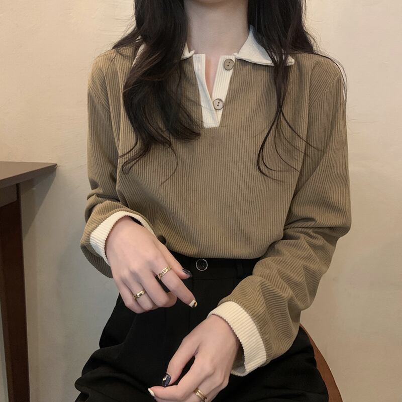 コーデュロイTシャツシャツ スプリング秋物スタイルトップス レッド 春物 オータム SYJ4858324424