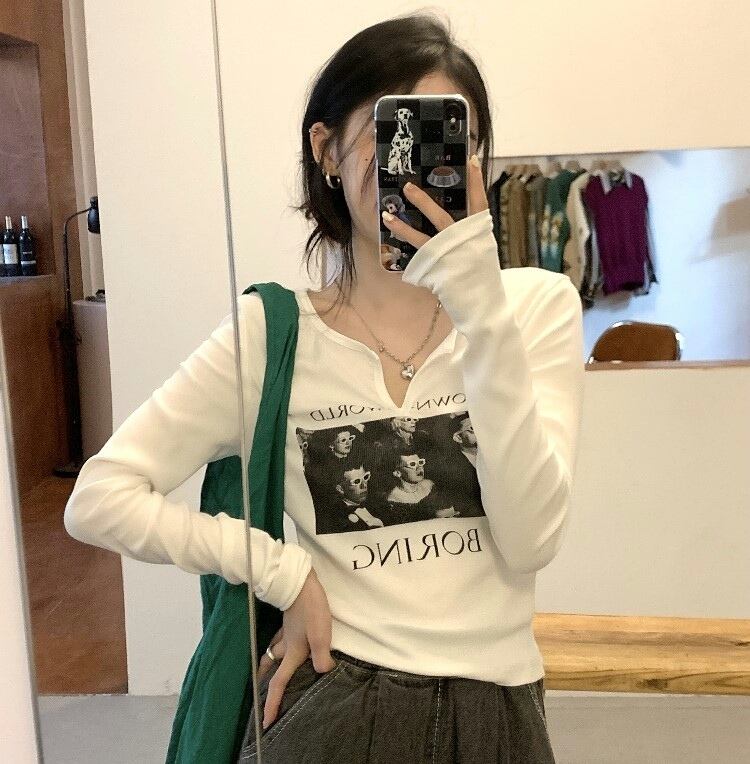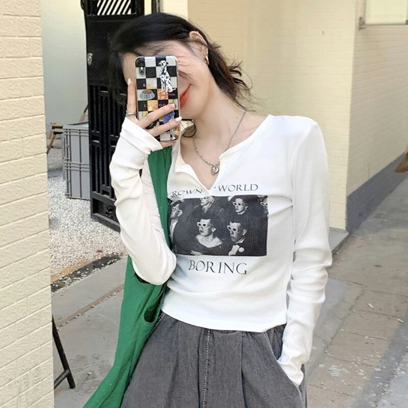 スタイルショートトップス ゆったりシャツ ホワイトTシャツ ロング ヨーロピアン 長袖 SPM93511965333