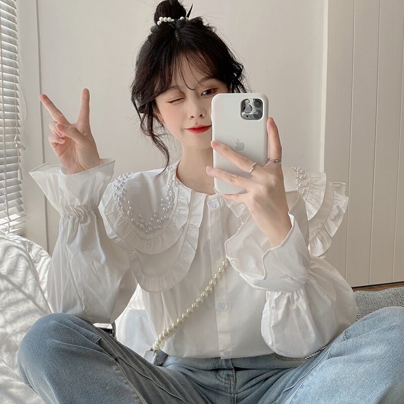 ホワイトカラーシャツ スプリングトップス ロング 春物 長袖 SYJ80847747472