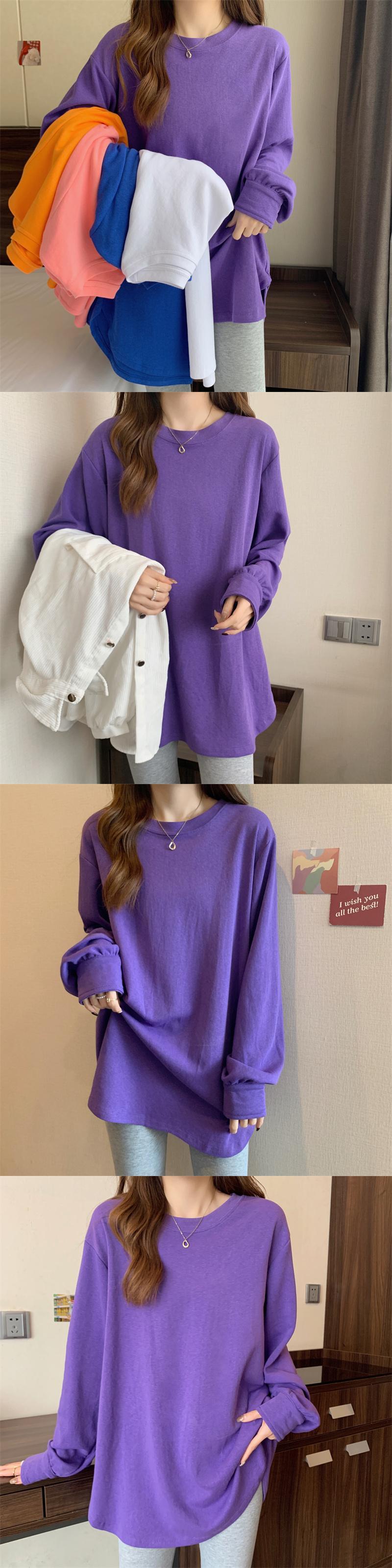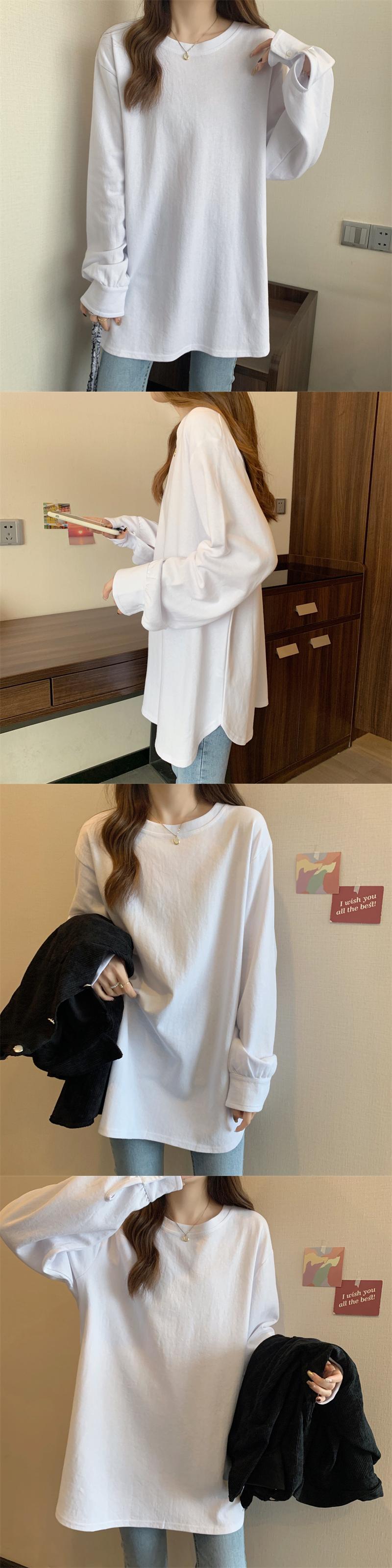 ブルーTシャツシャツ トップス スプリングゆったり ロング 春物 長袖 ミドル丈 SPM50766233410