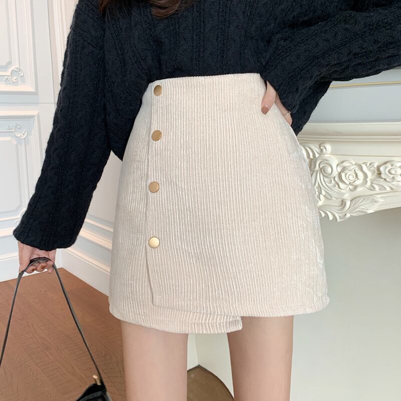 コーデュロイスカート スプリング秋物セーター Aラインハイウェストウェストショート 春物 オータム ウエスト SYJ68749307029