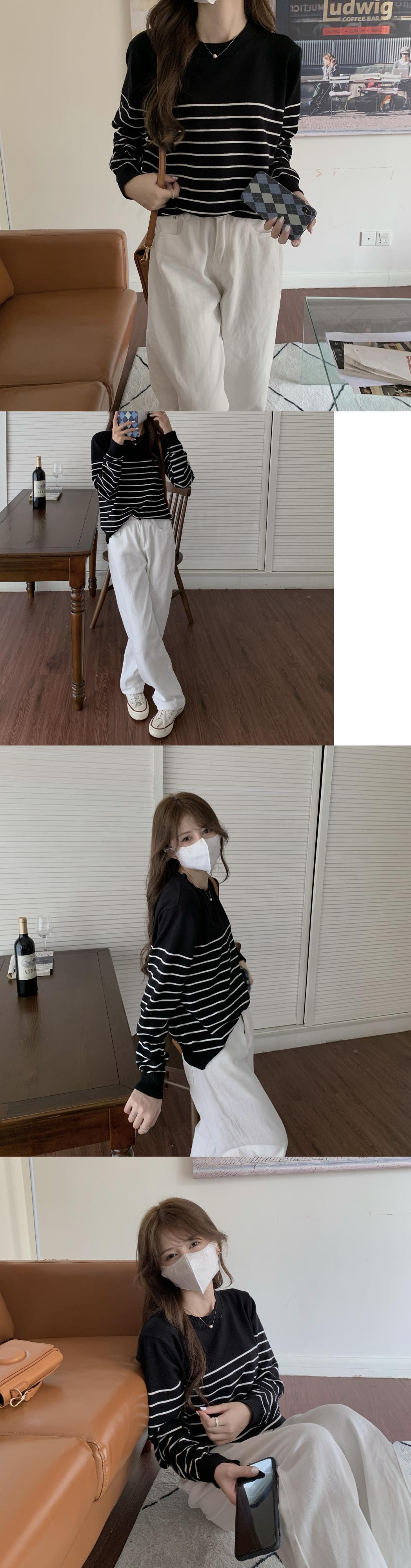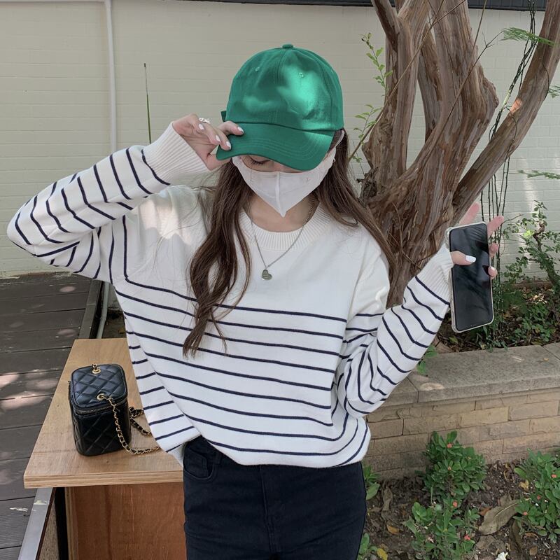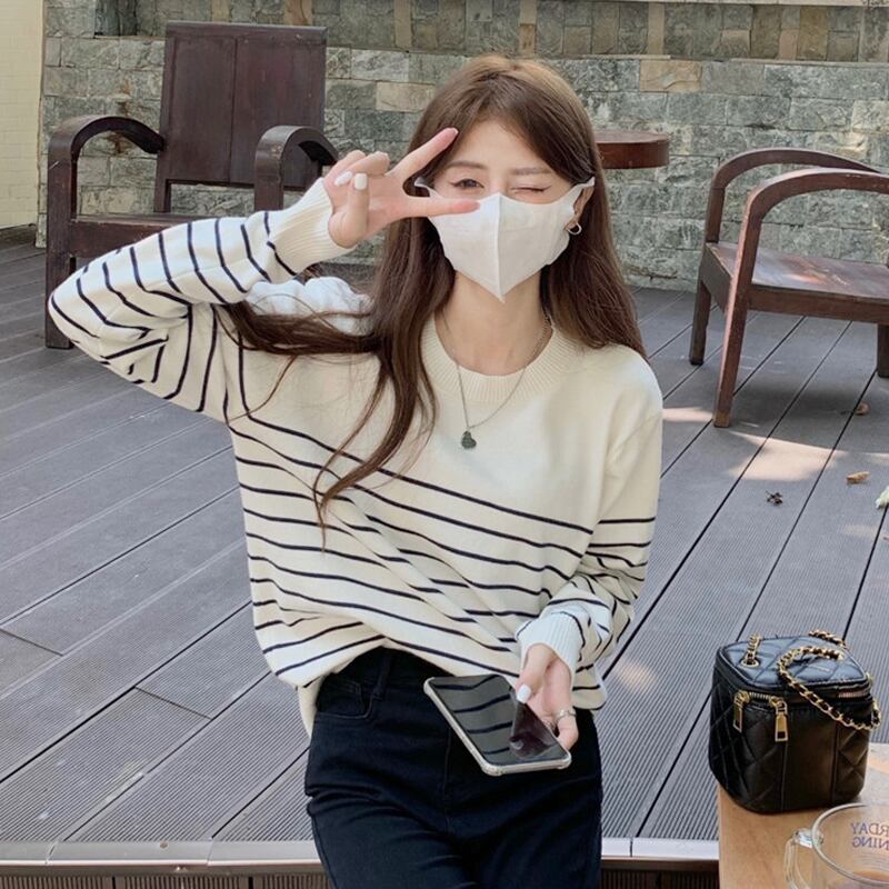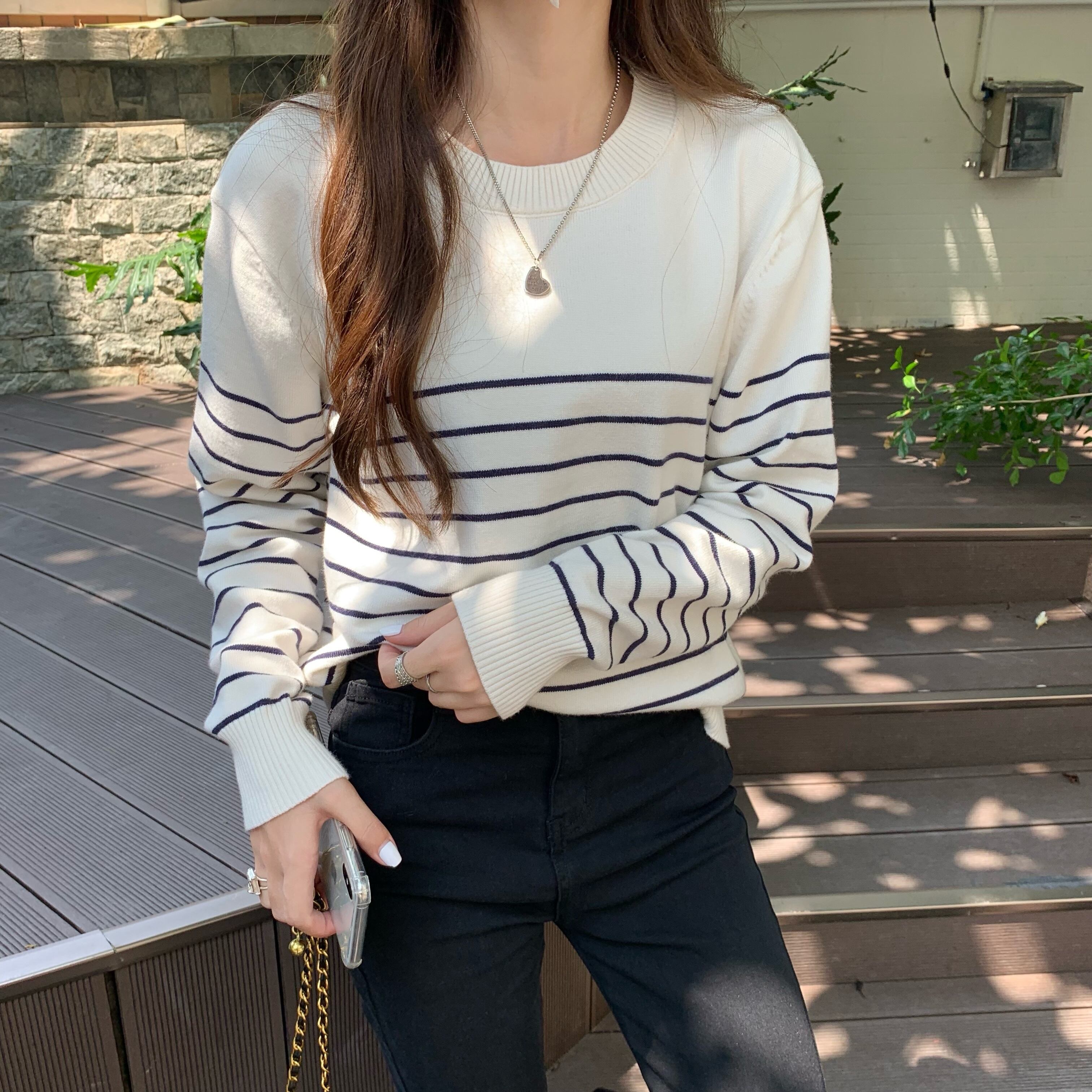ストライプセーター スプリングゆったりシャツ スタイルルーズトップス ロング 春物 長袖 SPM55074055410