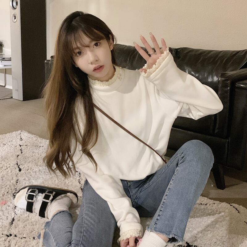 ゆったりシャツ スプリング秋物スタイル厚みホワイトトップス ロング 春物 オータム 長袖 SYJ43846886418