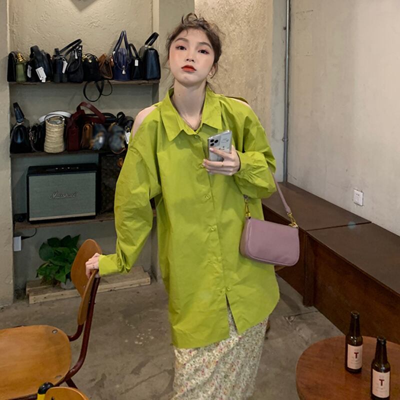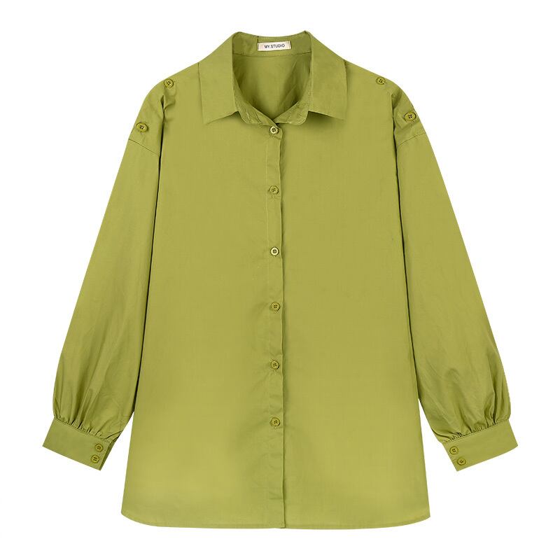 グリーンシャツ スプリング韓国ファッションルーズトップス ロング 春物 スタイル 長袖 SPM3250315769
