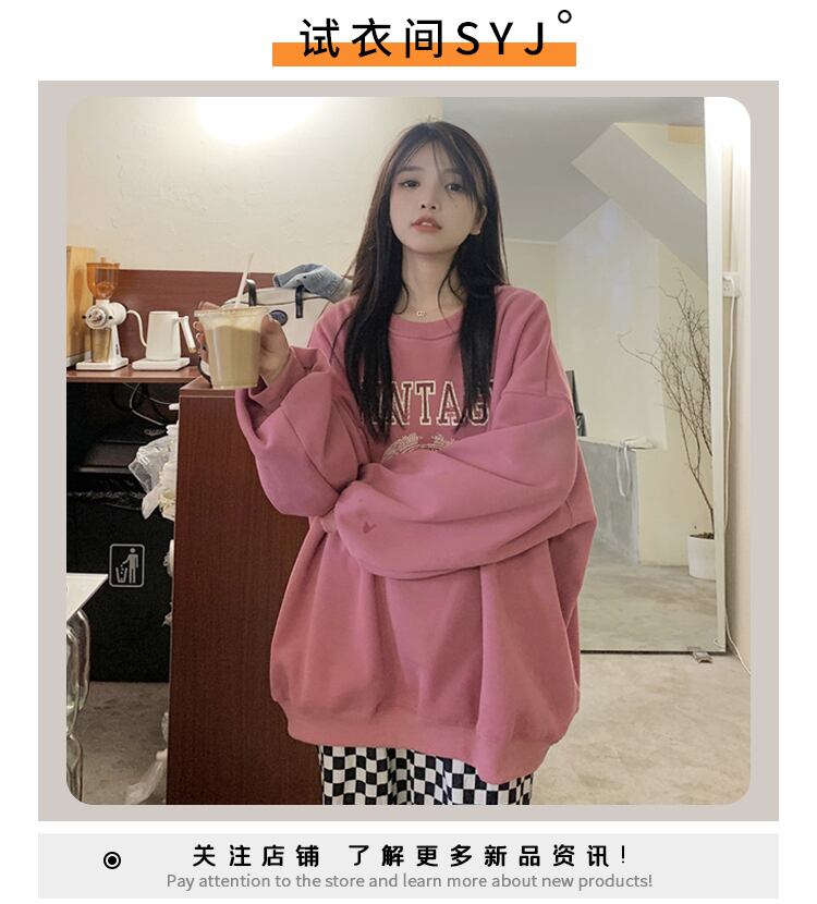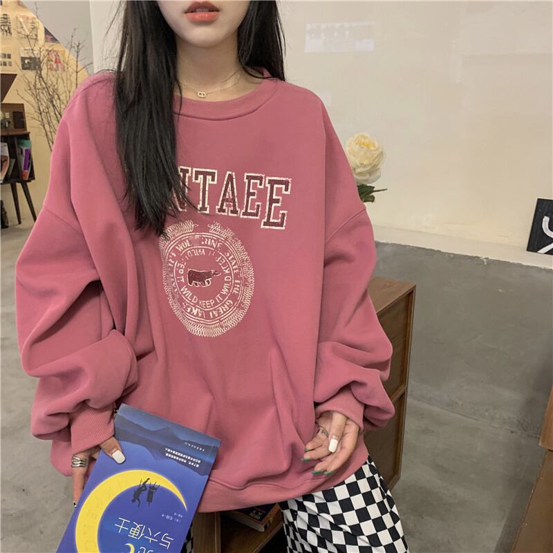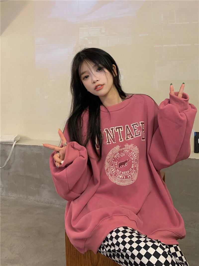 ラウンドネックセーター スプリング秋物スタイルオーバーサイズトップス NEW ピンク 春物 オータム Oネック ミドル丈 SYJ82229972177