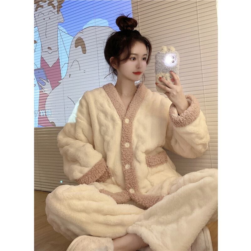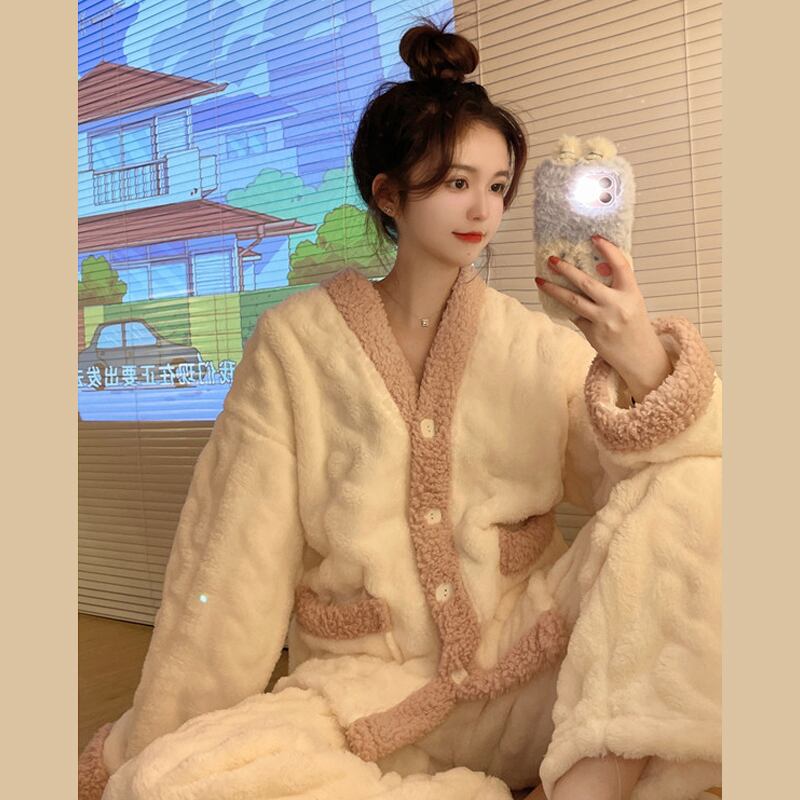 コーラル厚みパジャマ ルームウェアスプリング秋物スタイル 大人ガーリー スウィート キュート カジュアル 春物 オータム SYJ66920055988