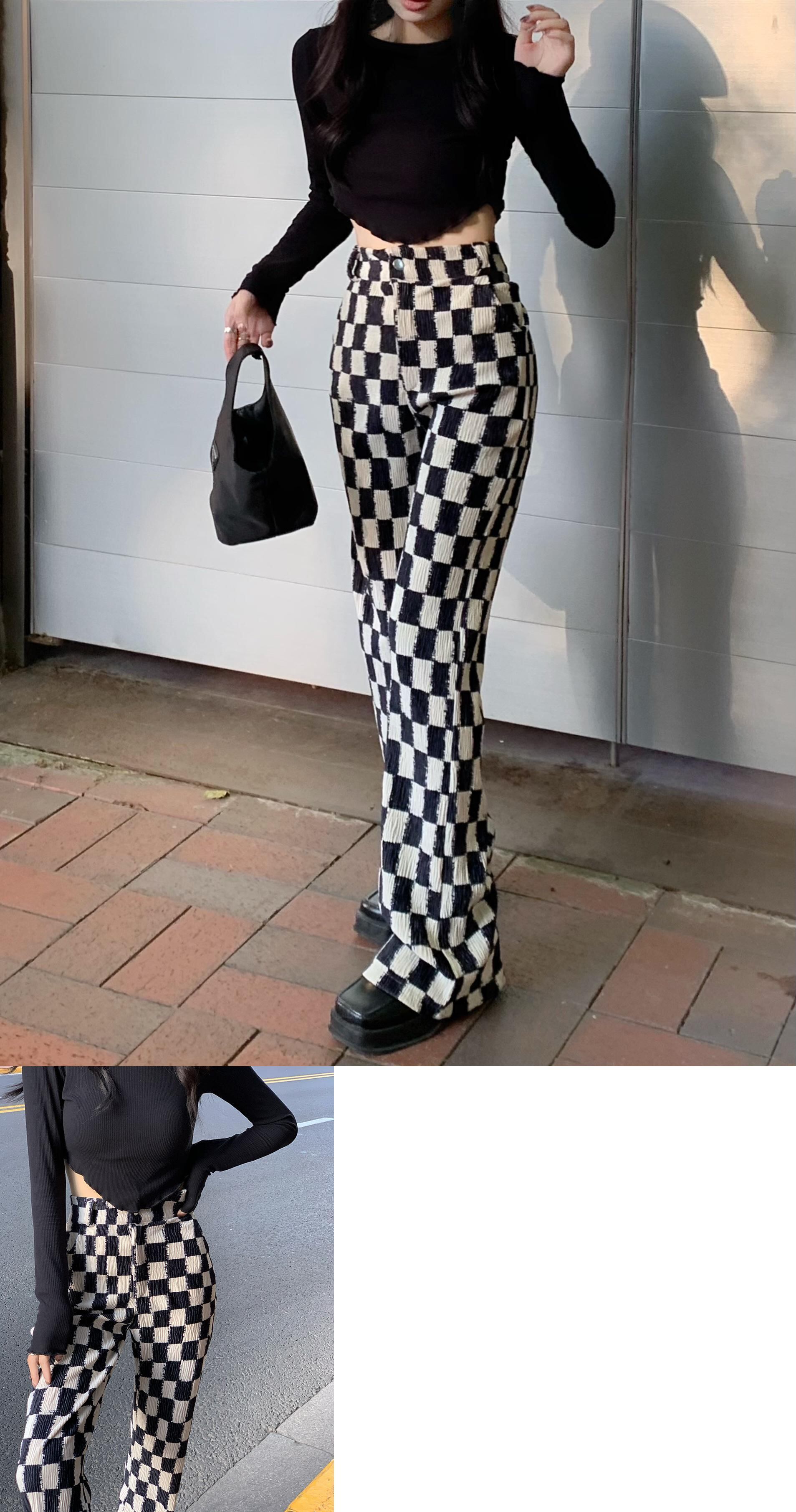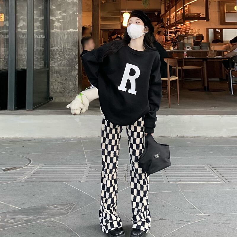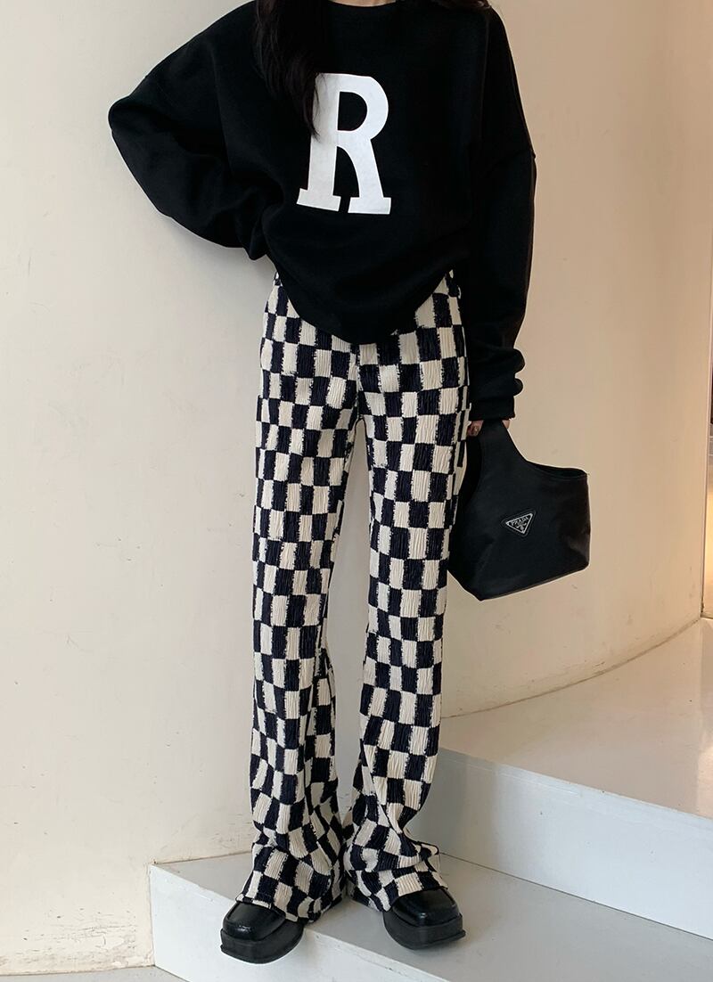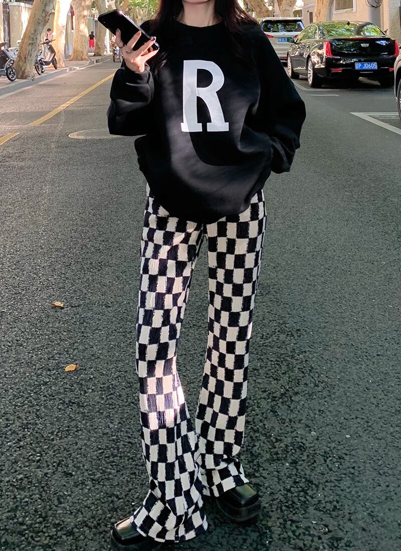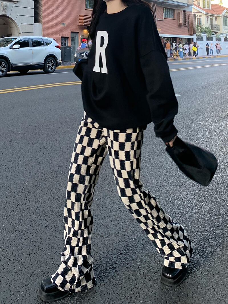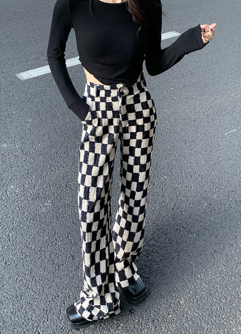 格子柄パンツ スプリング秋物スタンダードウェストロング レトロ 春物 オータム ウエスト SPM15243165407