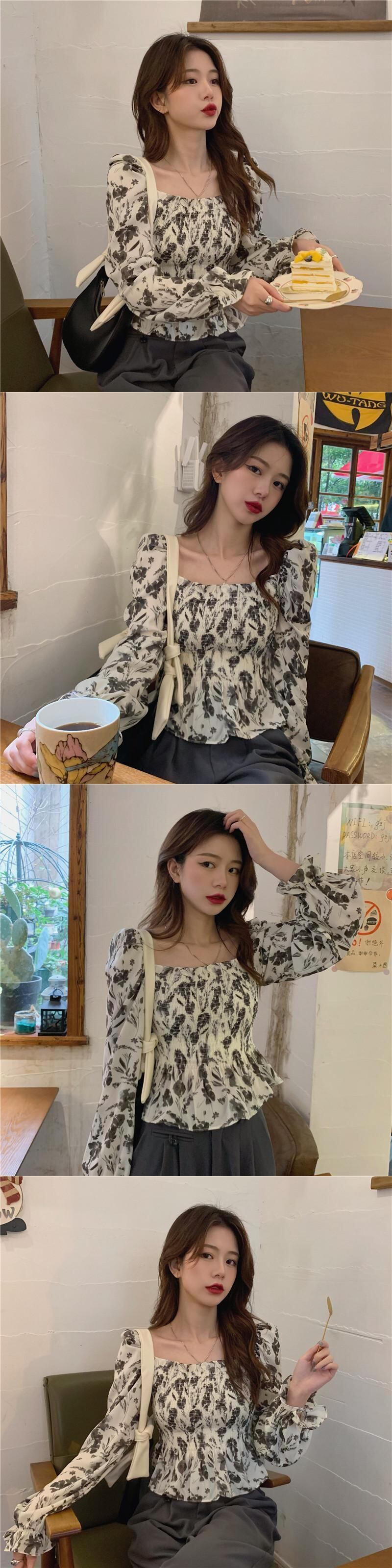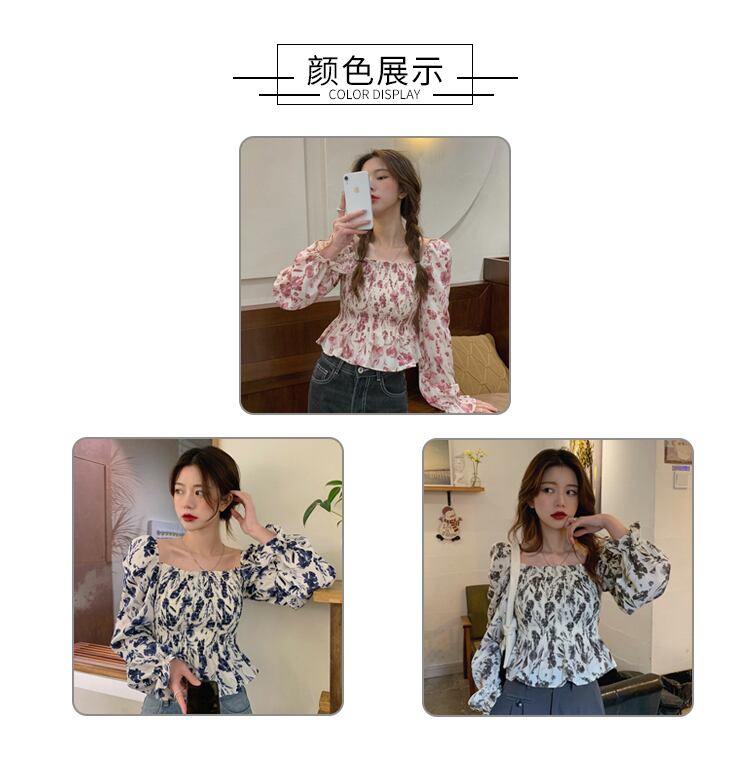 スタイルショートトップス スプリング秋物カラー長袖スリーブシャツ ロング 春物 オータム スクウェア SYJ41489049418