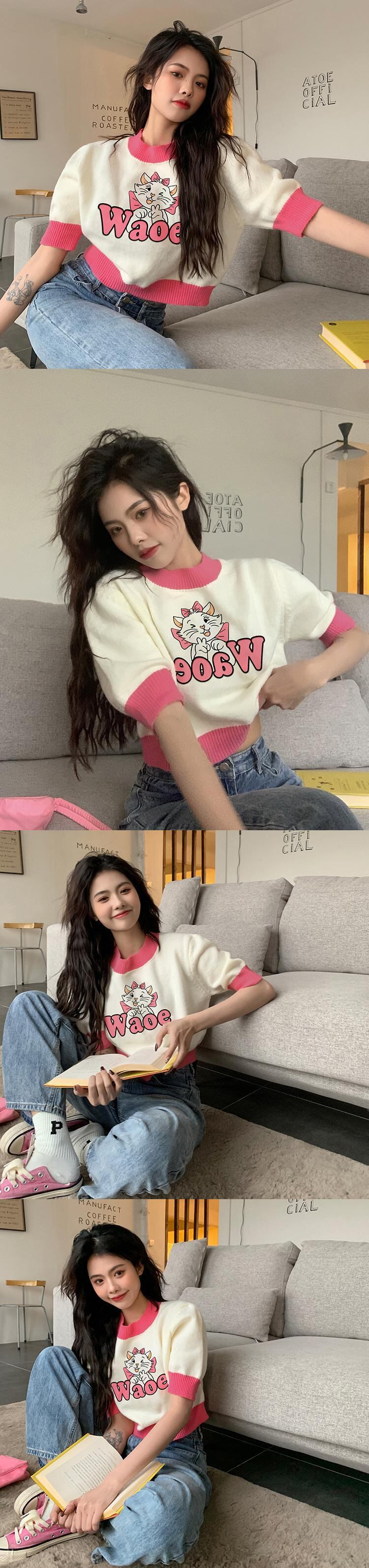 ショートセーター 夏服韓国ファッショントップス 大人ガーリー スウィート キュート カジュアル 夏物 SPM55524349670