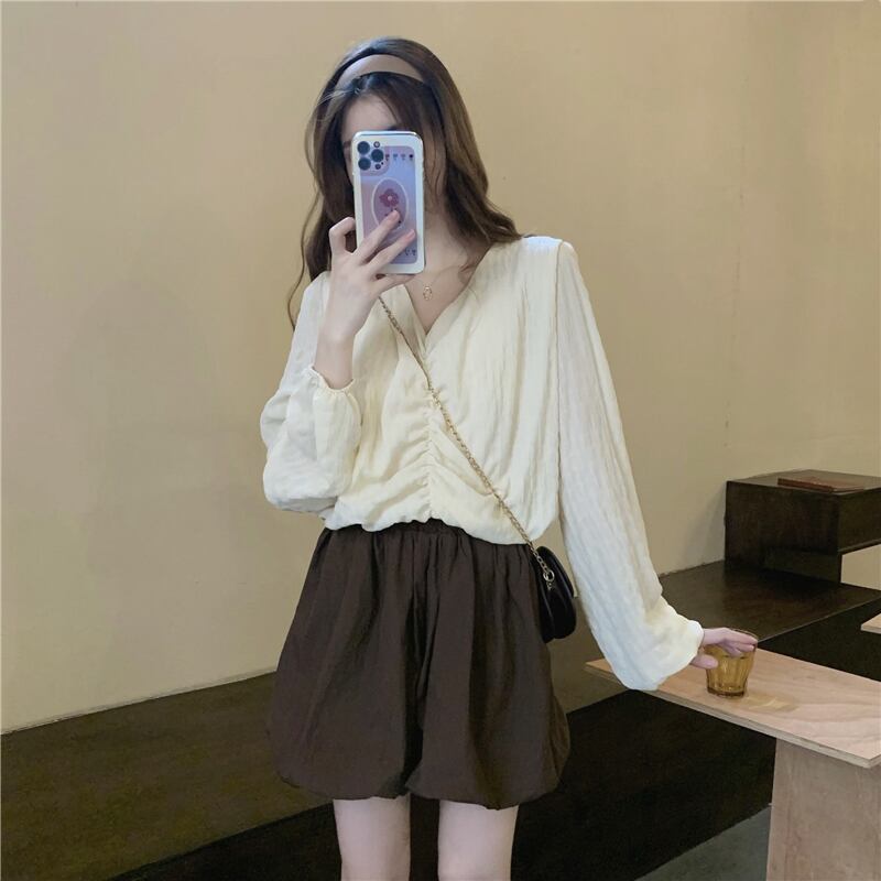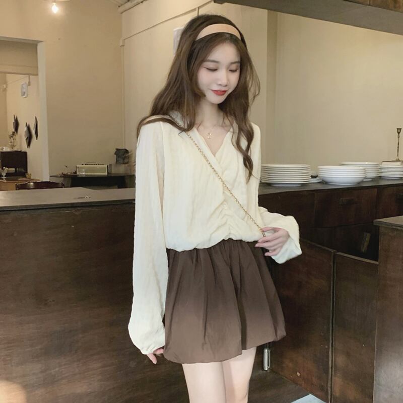 ショートトップス スプリング韓国ファッションスタイルVネックシャツ 春物 SYJ1129290812