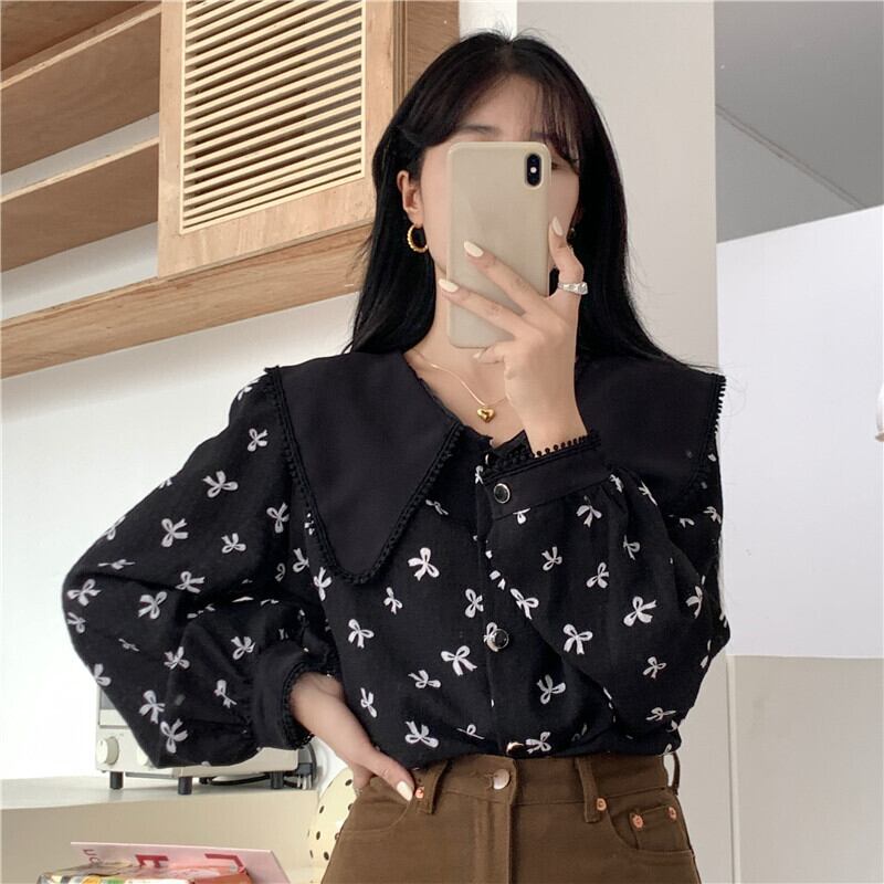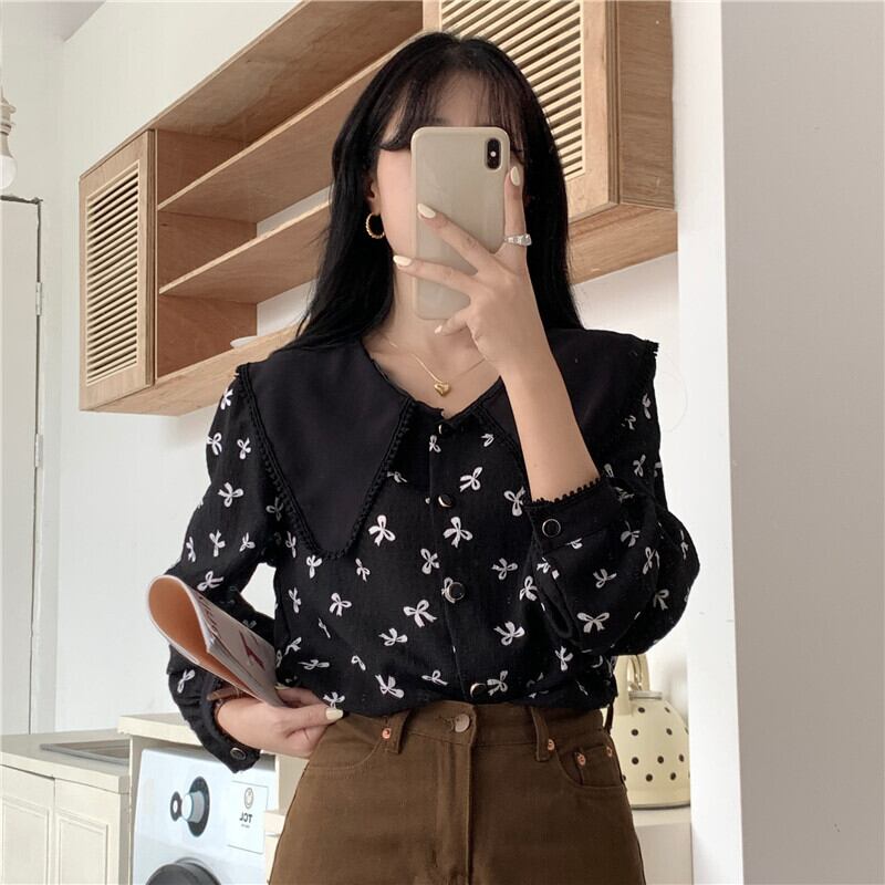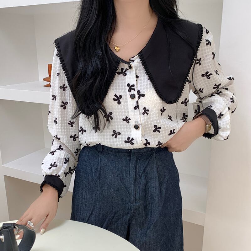 ホワイトカラーフローラルシャツ スプリングスタンダードトップス レトロ 春物 花柄 SYJ65806115443
