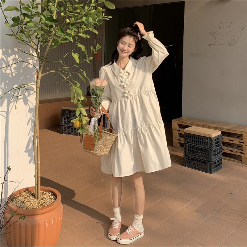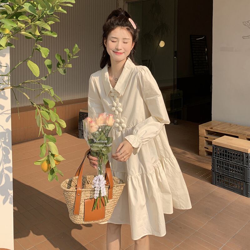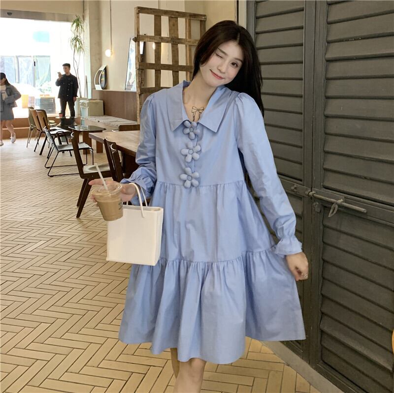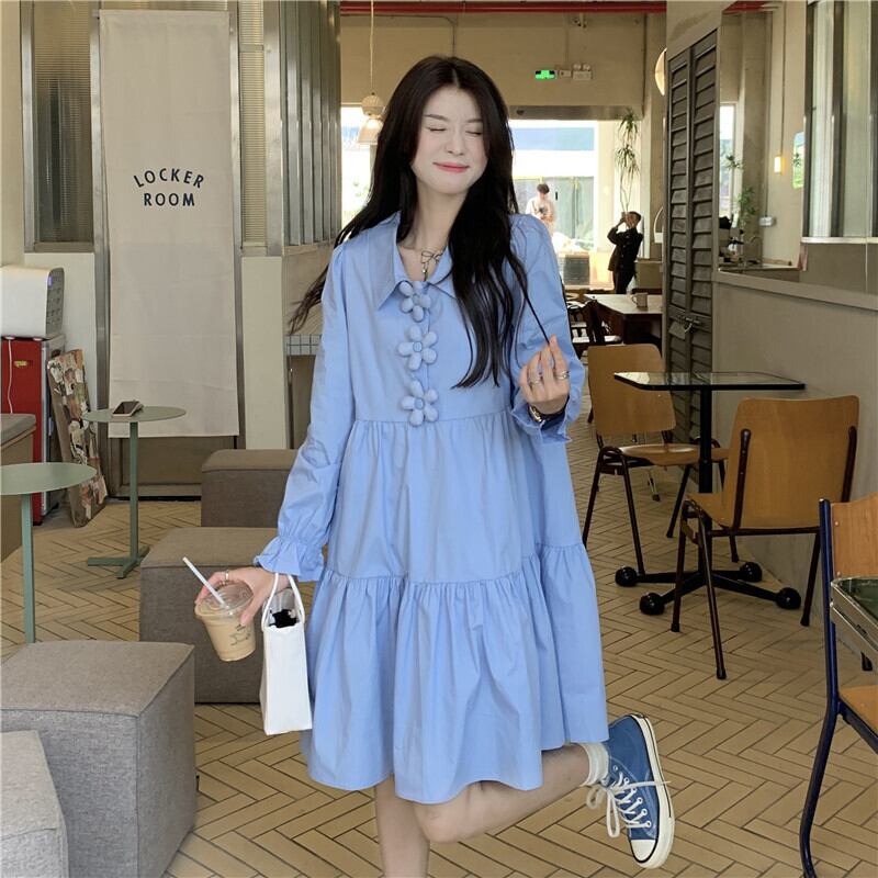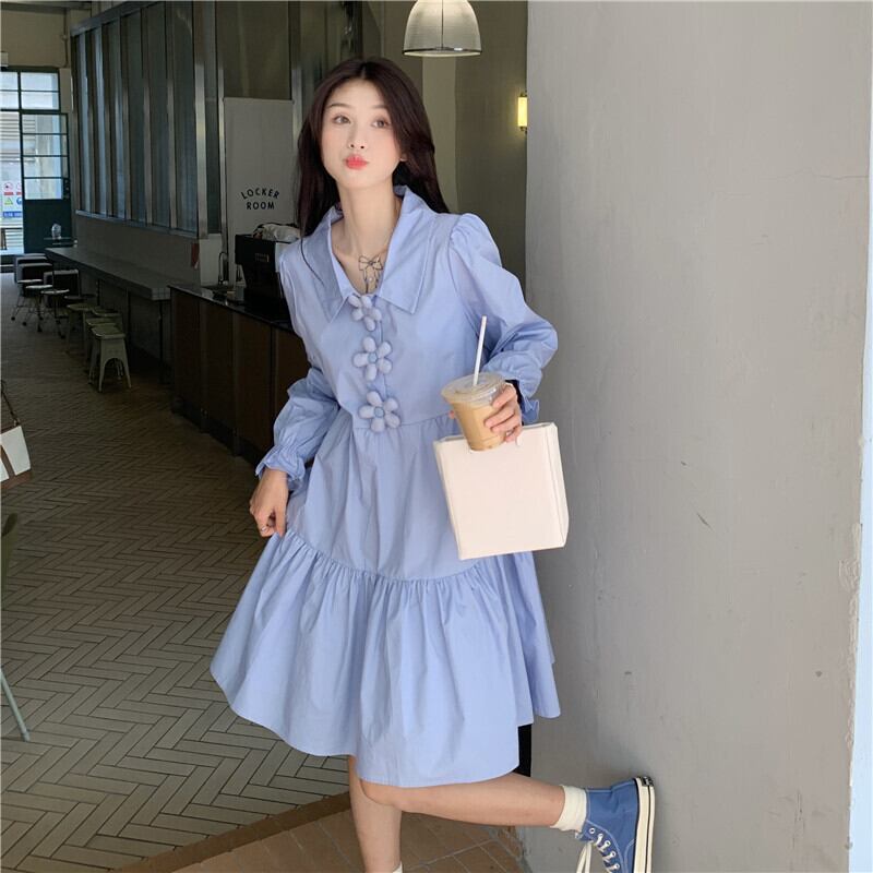 ブルーシャツ ワンピーススプリング韓国ファッションルーズスカート 大人ガーリー スウィート キュート カジュアル 春物 SPM17159782803