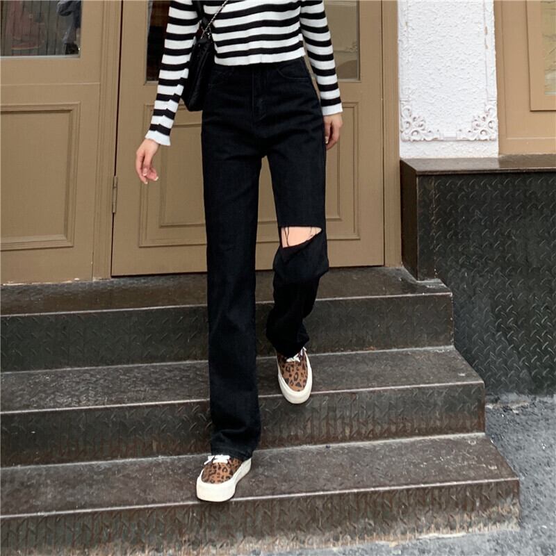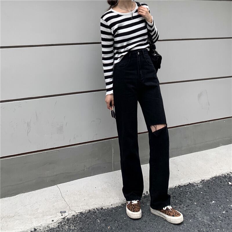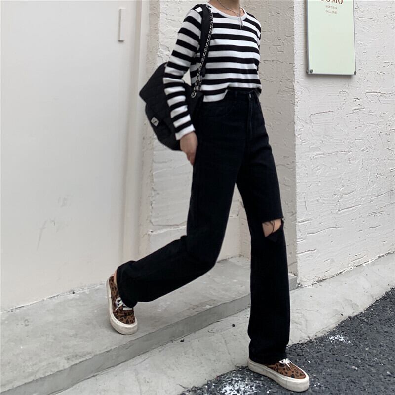 ハイウェストウェストジーンズ レディーススプリングブラックパンツ ルーズワイドレッグ 春物 ワイドパンツ ウエスト SPM13069619042