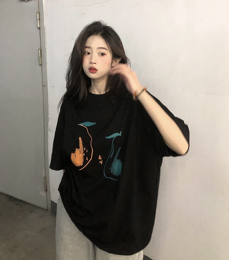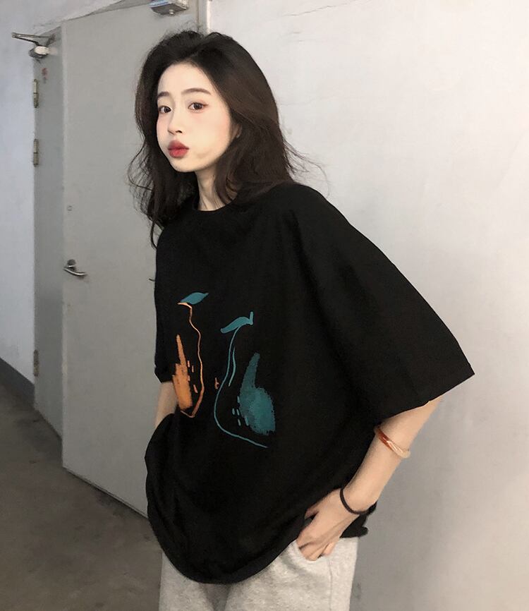 ブラックTシャツシャツ スプリングゆったりスタイルトップス 春物 SYJ50392533989