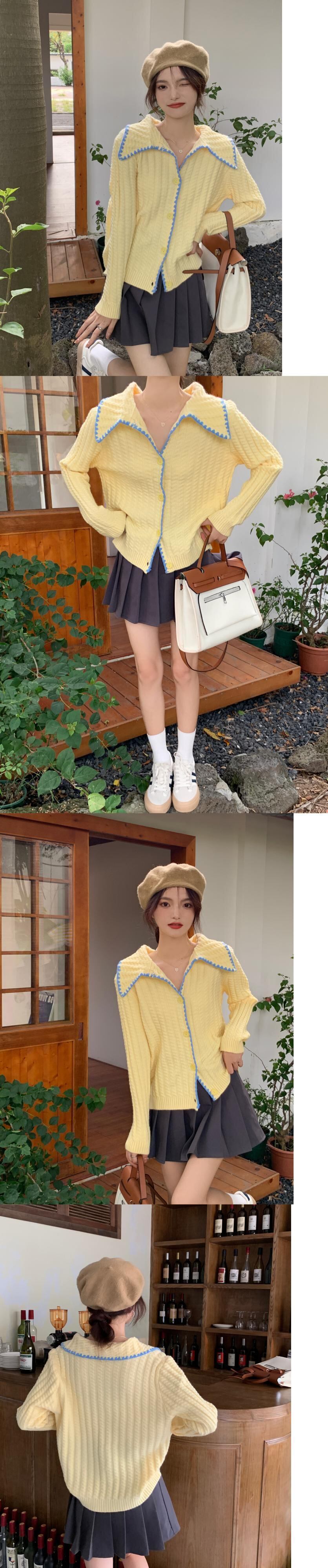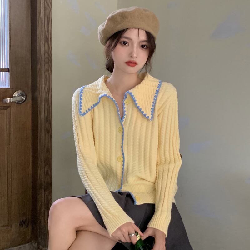 イエローセーター コート トップス スプリング秋物韓国ファッションニットカーディガン 大人ガーリー スウィート キュート カジュアル 春物 オータム SYJ14056475328