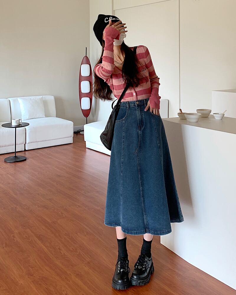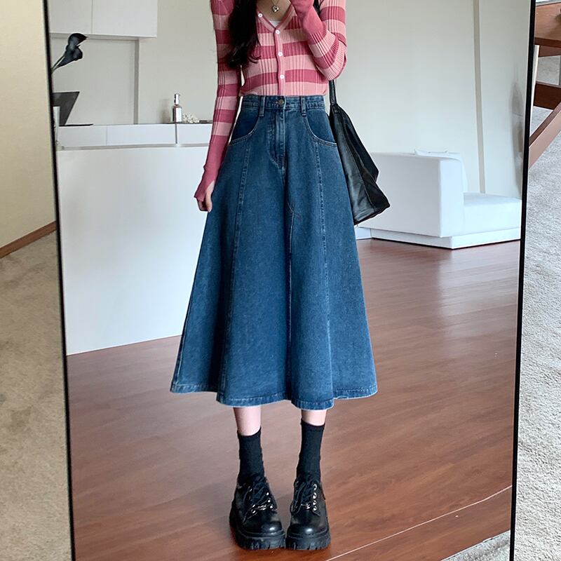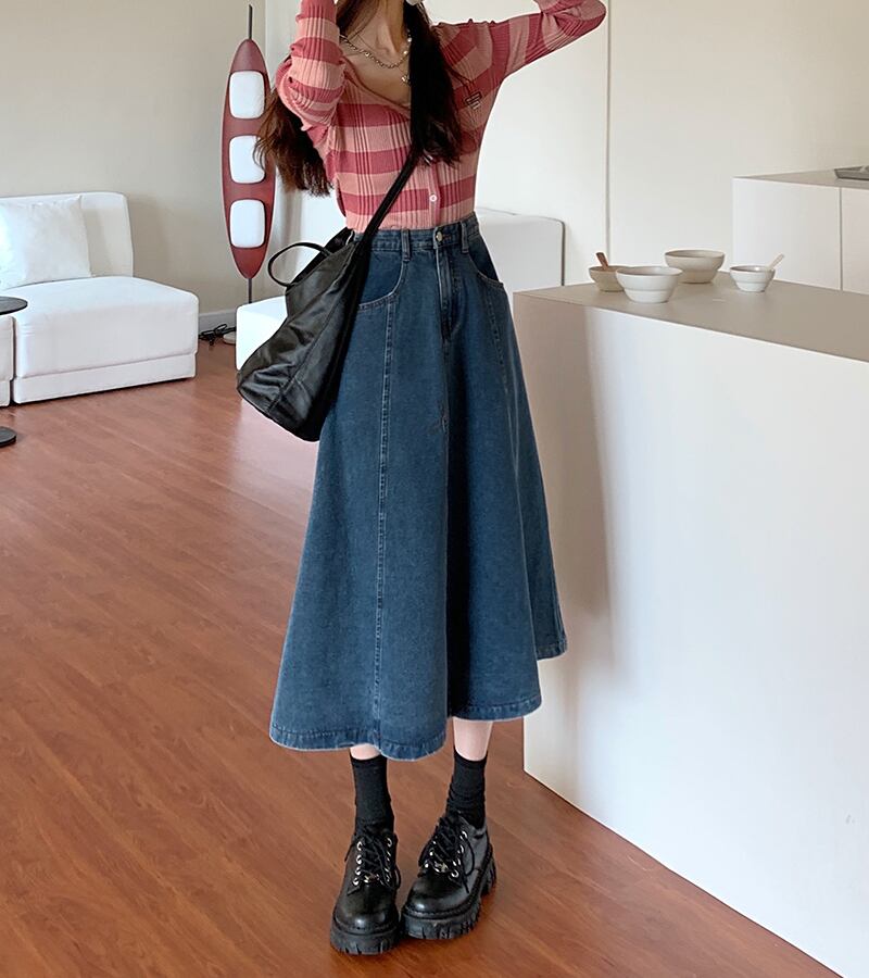 スカート スプリングハイウェストAラインNEW 春物 ウエスト ミドル丈 SYJ60883480970