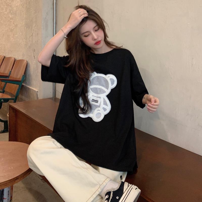 NEWTシャツ夏服ルーズブラックトップス 夏物 SPM30815553522