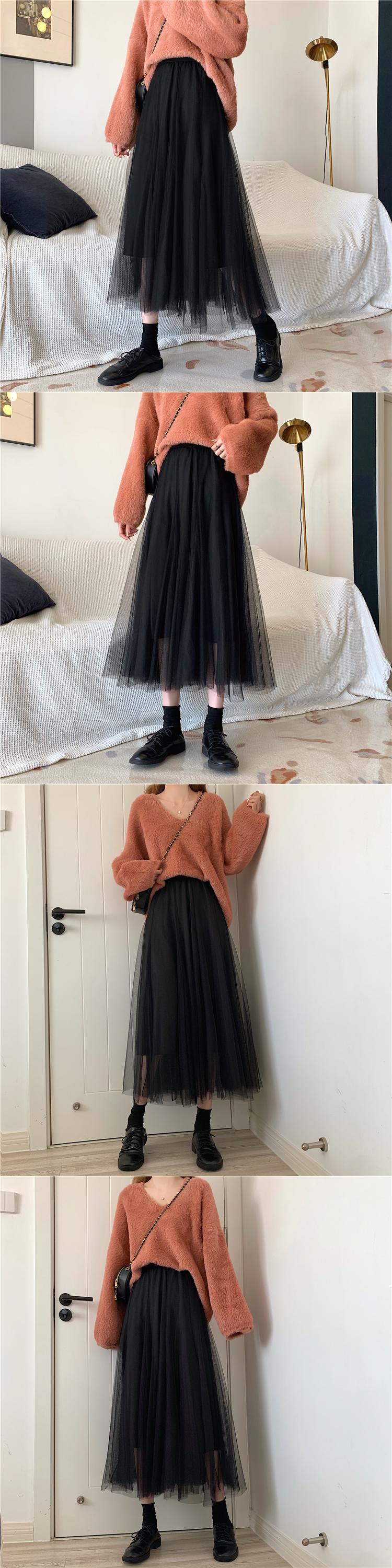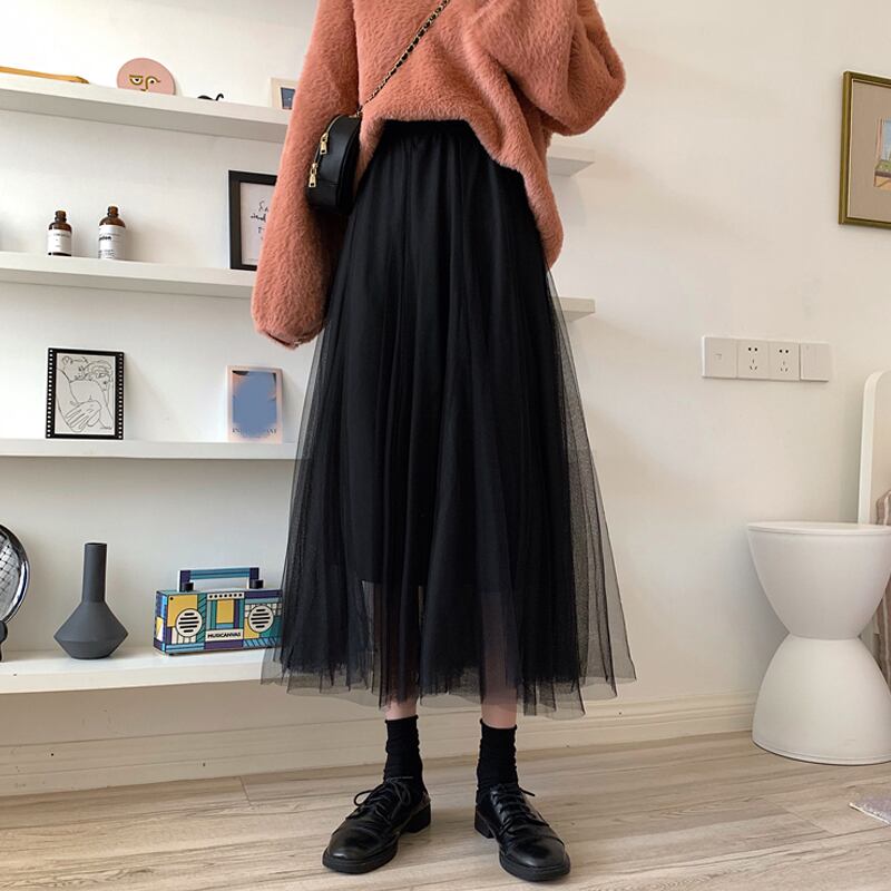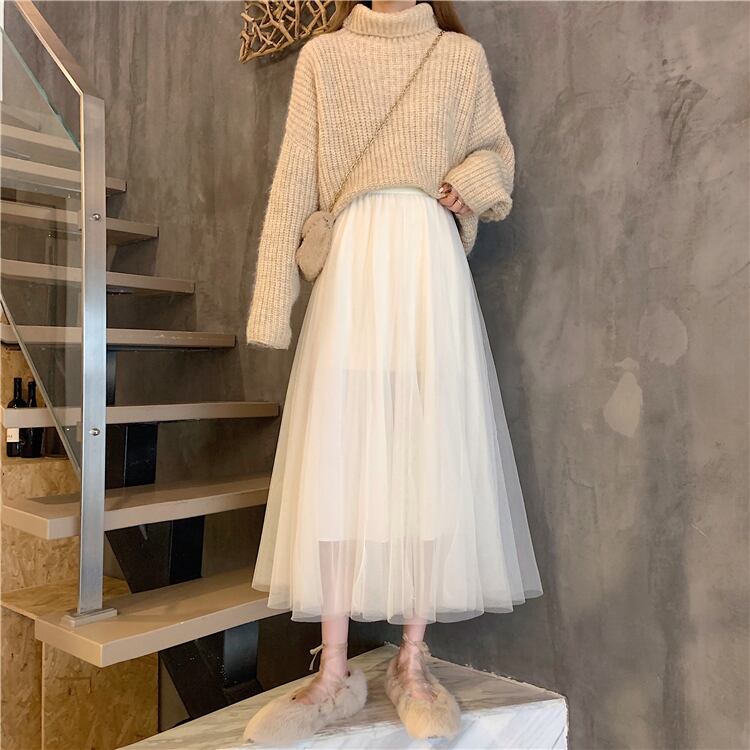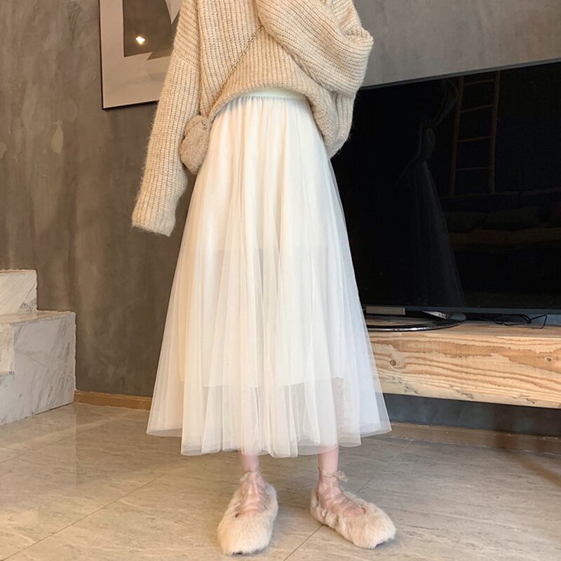メッシュスカート スプリング秋物セーター ハイウェストウェストAライン 春物 オータム ウエスト ミドル丈 SYJ16042932328