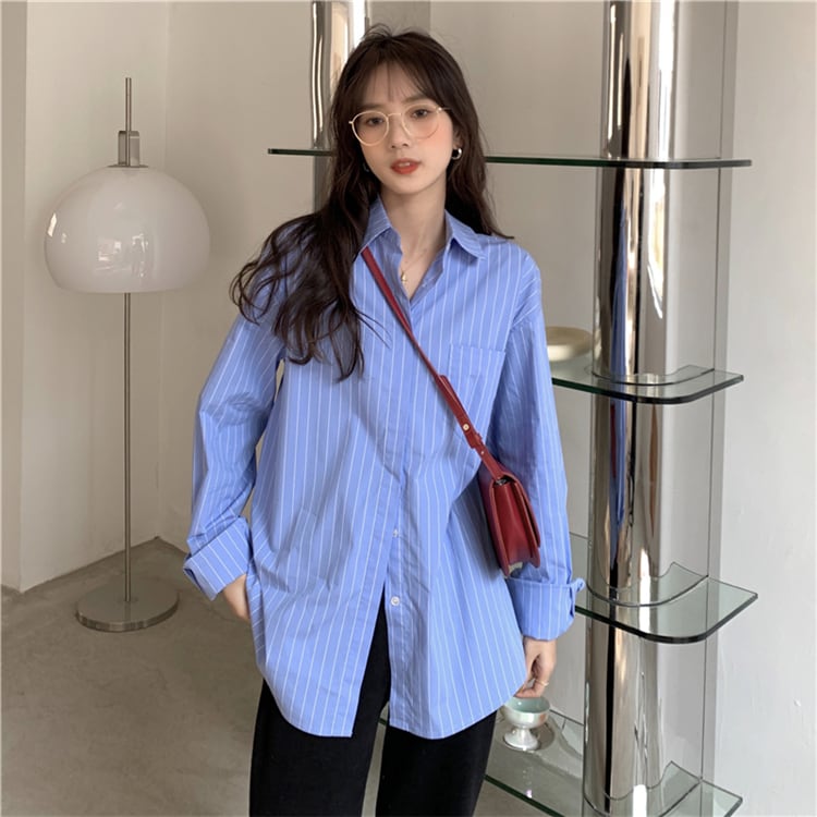 ストライプシャツ スプリングスタンダードトップス レトロ 春物 SYJ97903144826