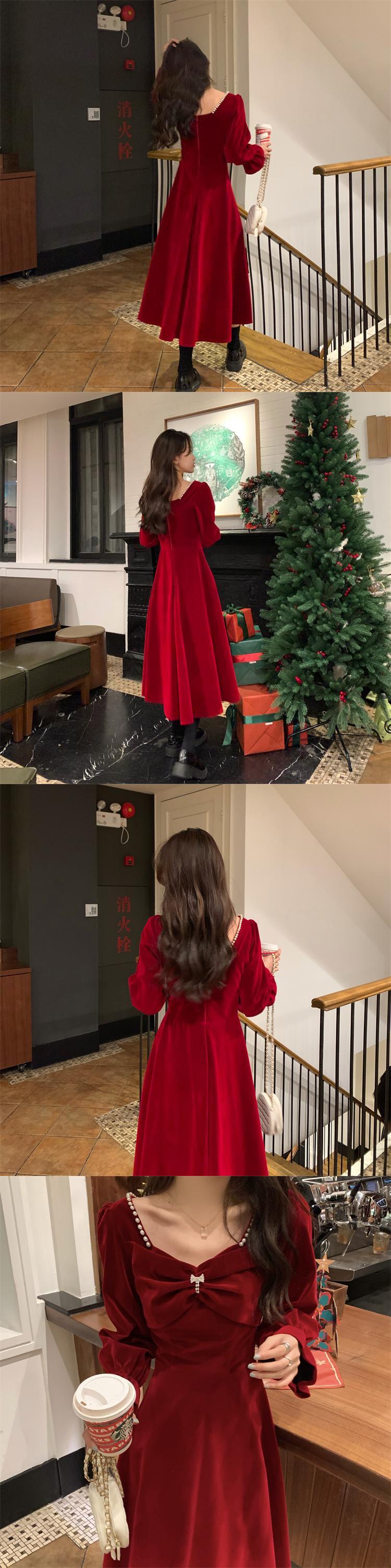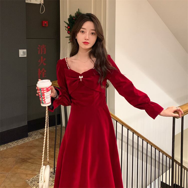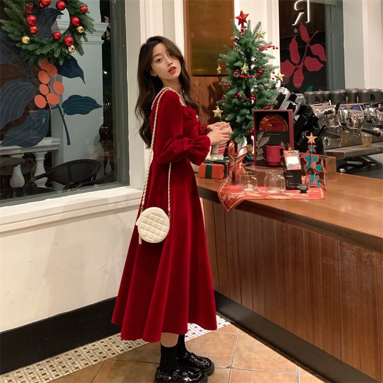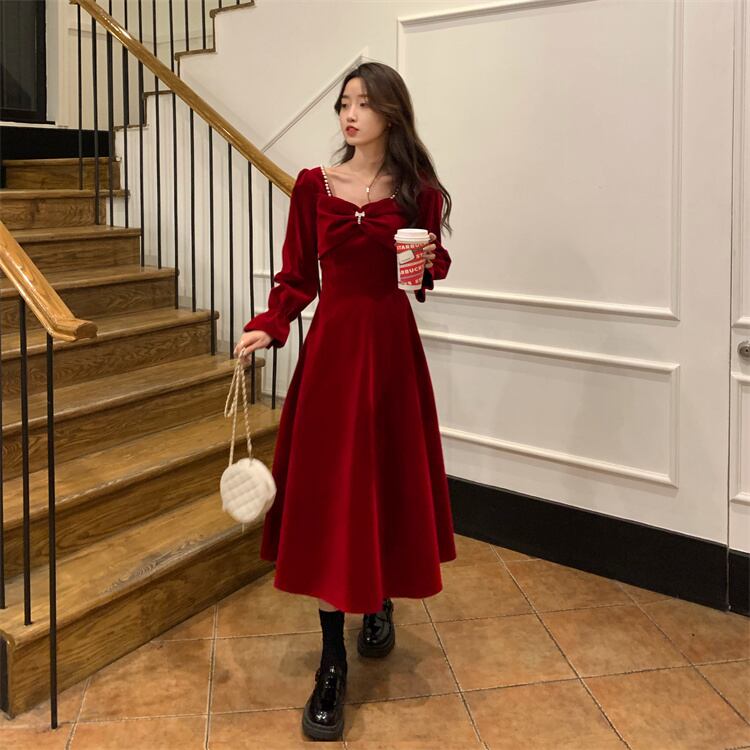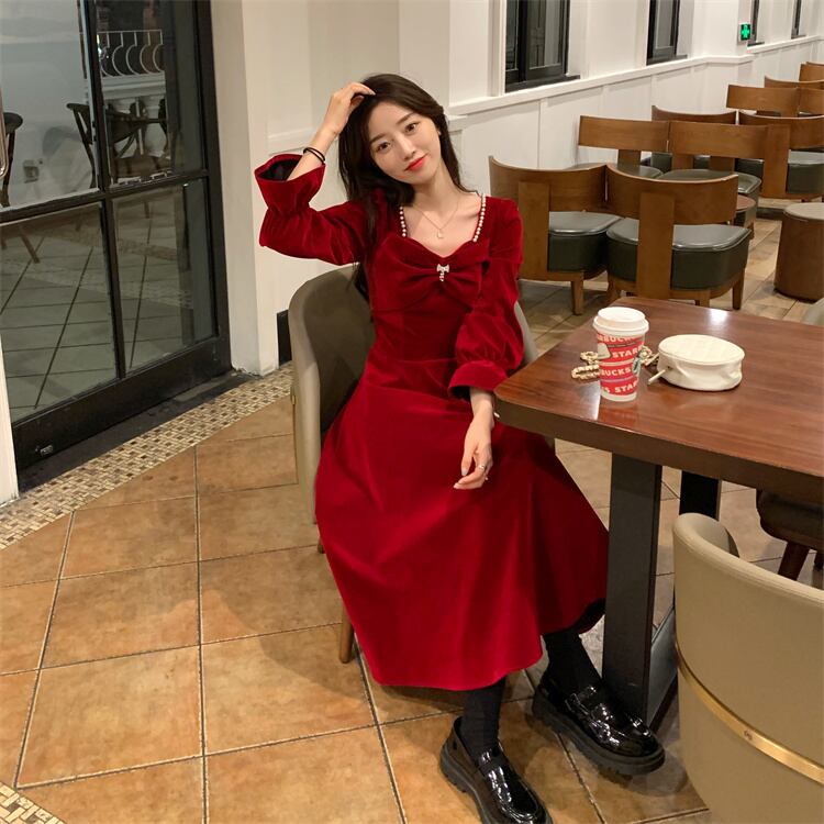 レッド厚みワンピーススプリング秋物ゆったりスカート ロング 春物 オータム SPM38576399969