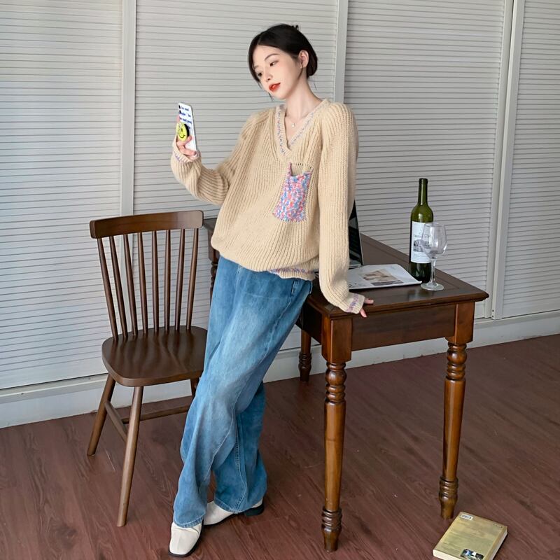 セーター スプリング秋物韓国ファッションニットトップス 春物 オータム パープル SYJ19903591642