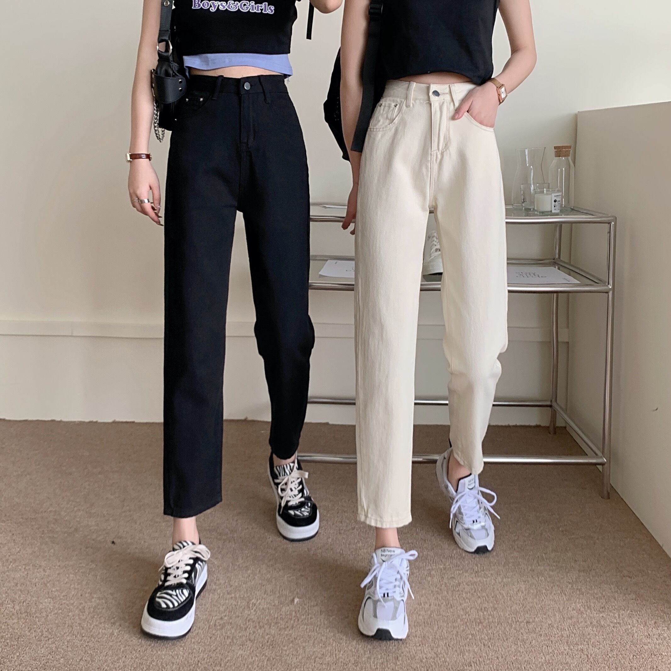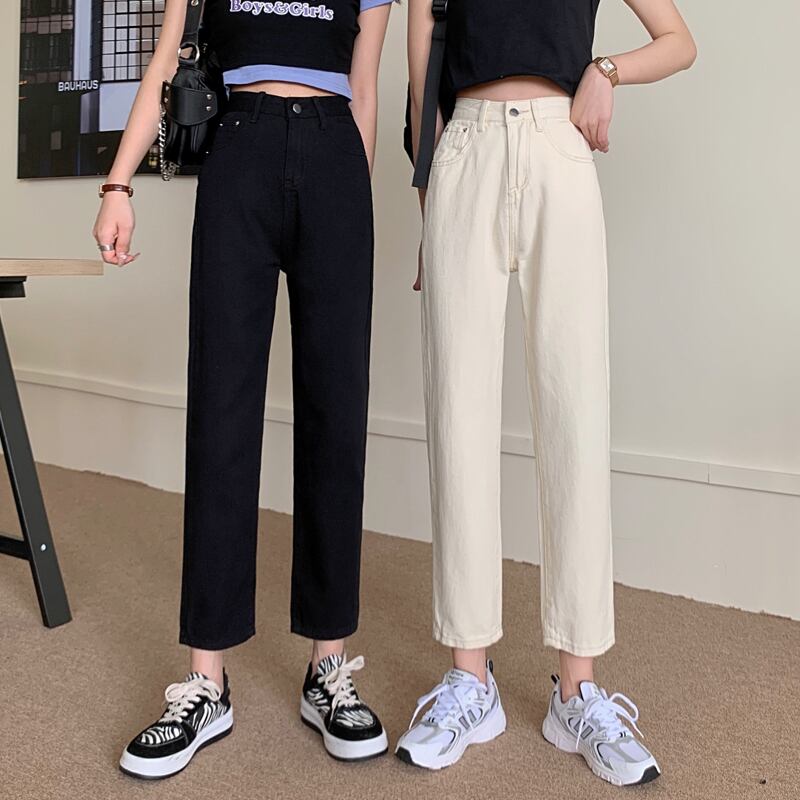 ブラッククロップドジーンズ スプリングハイウェストパンツ ルーズ 春物 ウエスト SYJ6512106223
