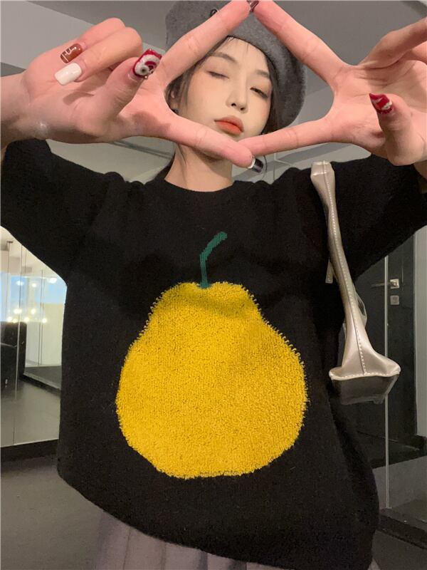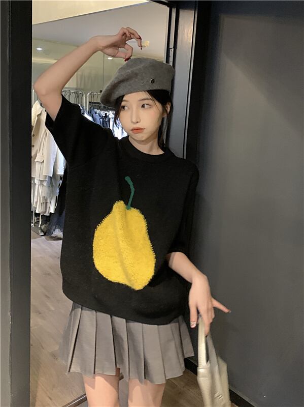 ブラックショートセーター スプリング韓国ファッションスタイルトップス 春物 SPM6114219805