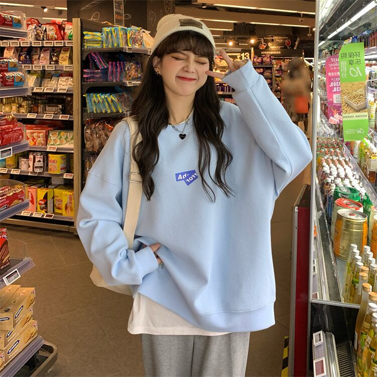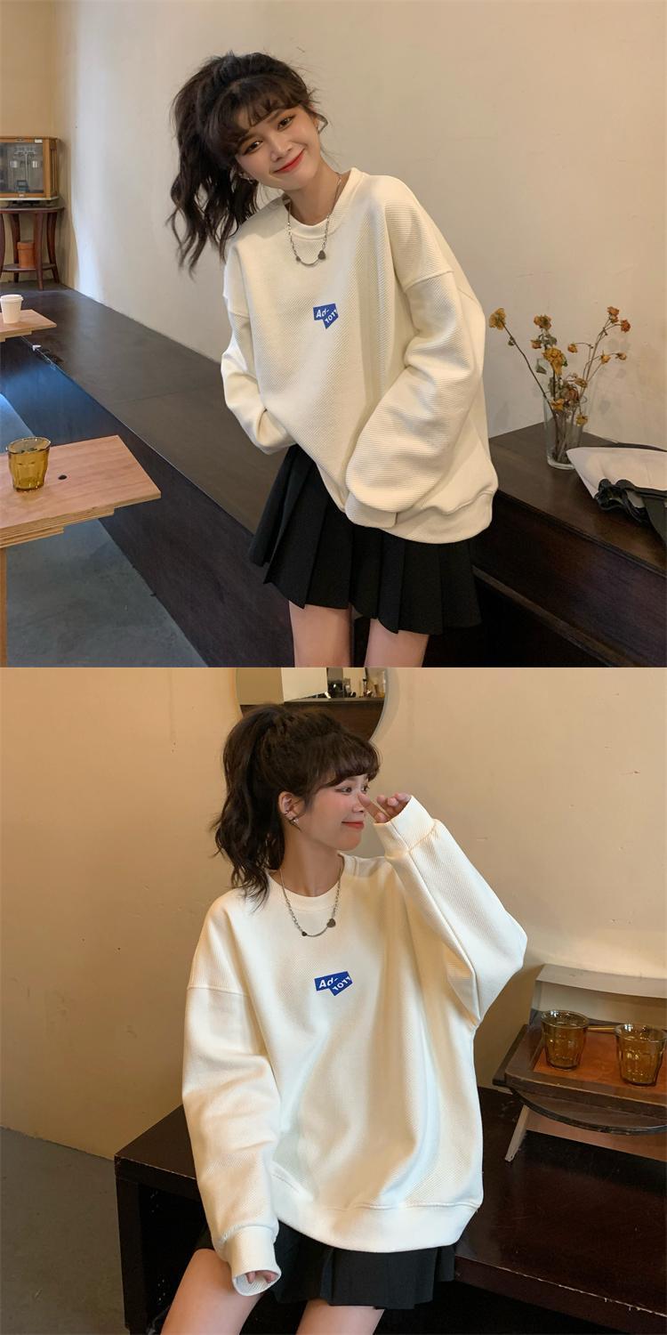ラウンドネックセーター スプリング秋物ルーズNEW ホワイト 春物 オータム Oネック SYJ99518914111