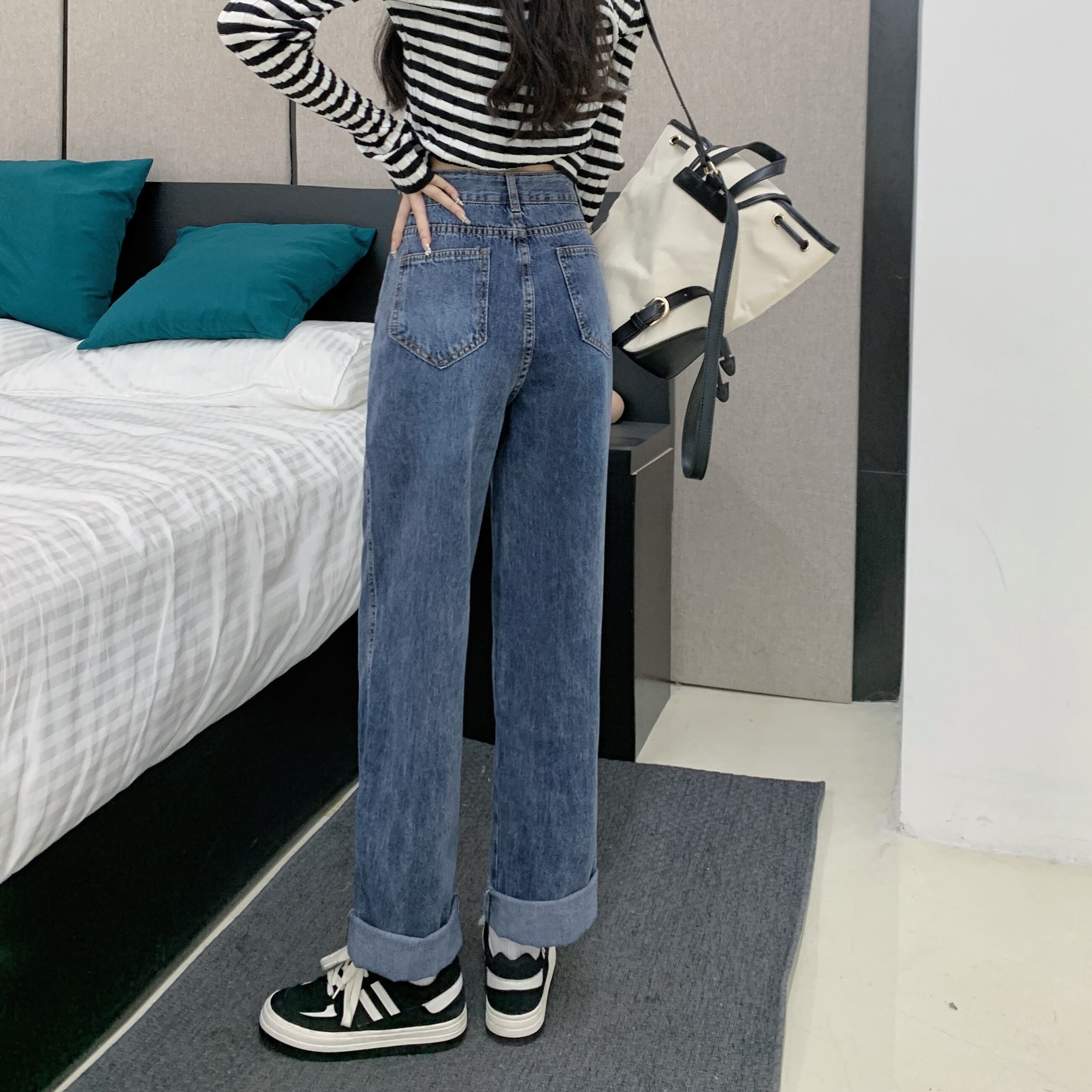 ウェストジーンズ スプリング秋物スタイルスリムパンツ ルーズワイドレッグ 春物 オータム ワイドパンツ ウエスト SPM21837474906