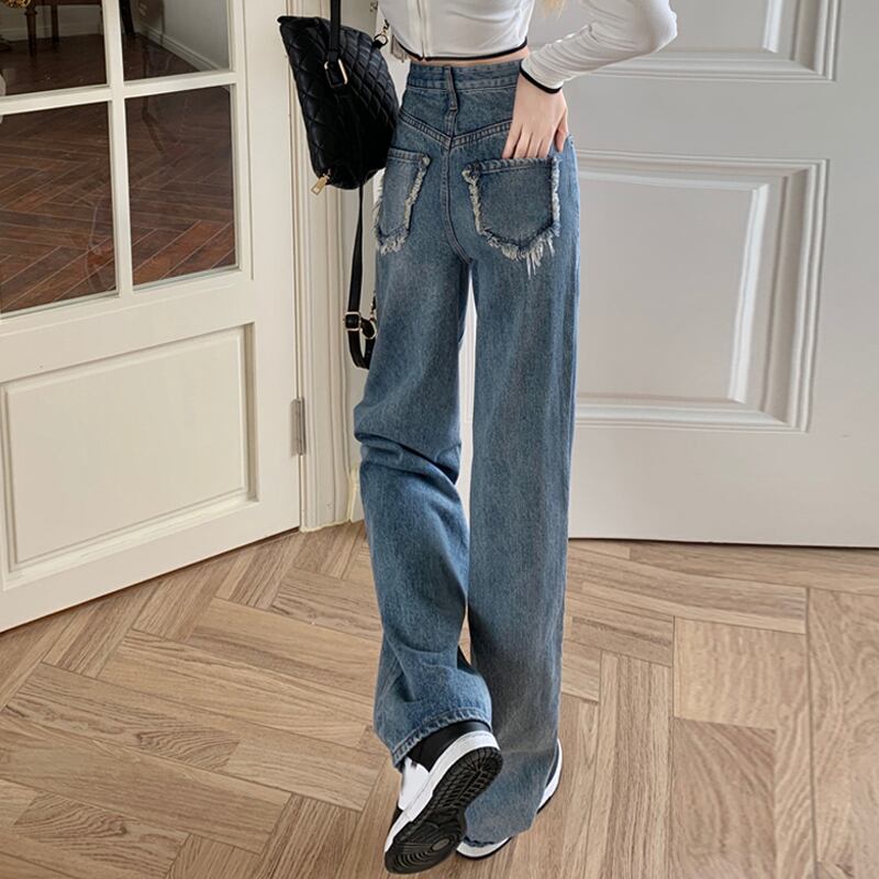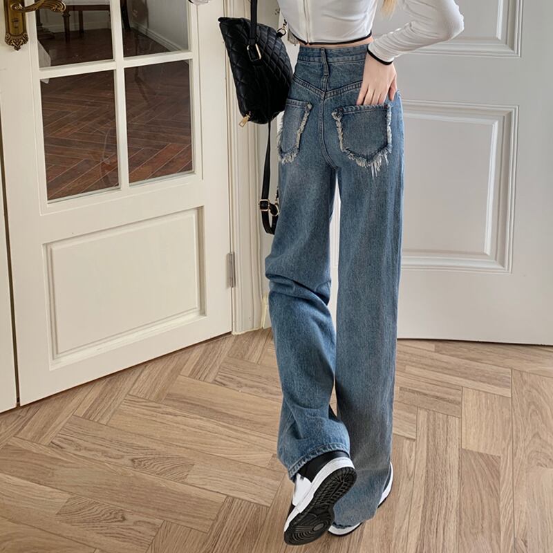 ブルージーンズ スプリング秋物ハイウェストウェストワイドレッグパンツ ルーズ 春物 オータム ワイドパンツ ウエスト SYJ24609367128
