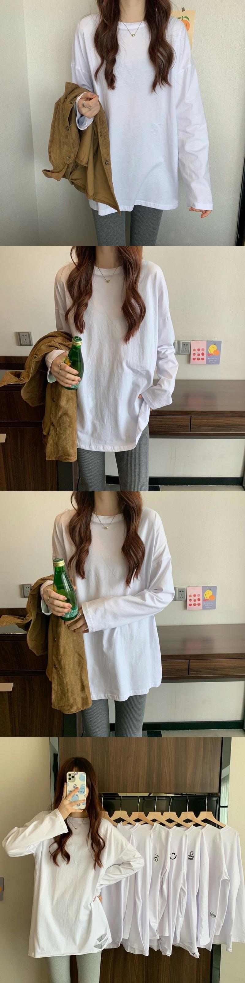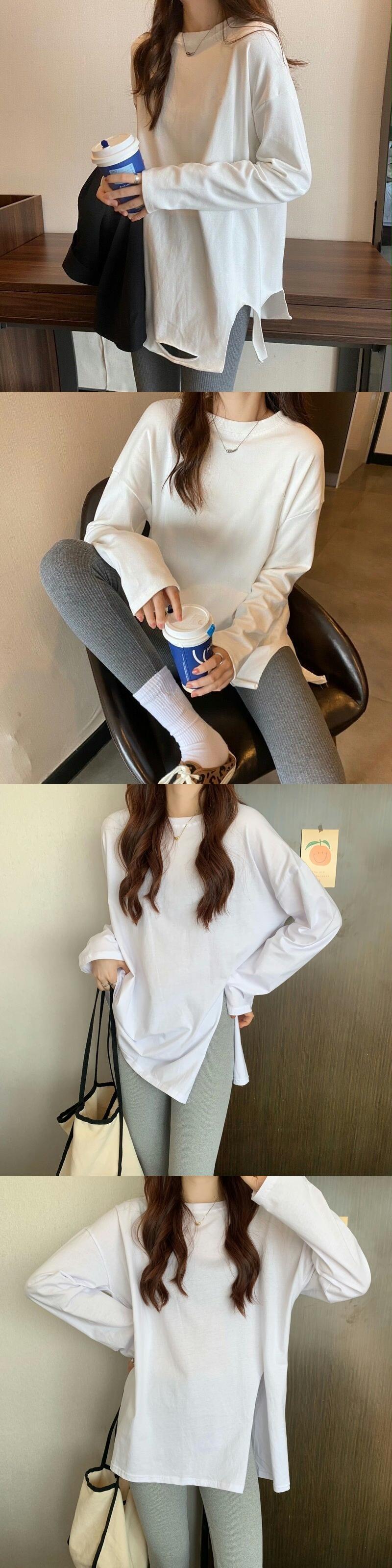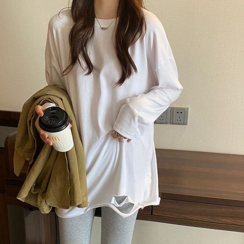 ホワイトTシャツシャツ スプリングゆったりトップス ロング 春物 長袖 ミドル丈 SYJ62384820729