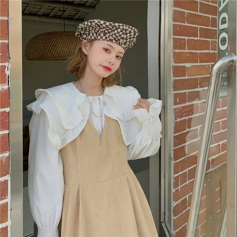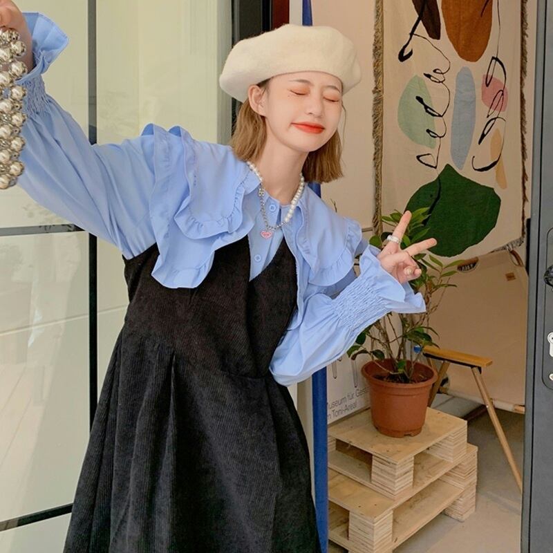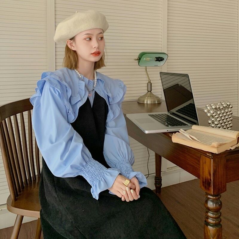 色:白いシャツのワンピース,スカイブルーのシャツ,ワンピースベージュスカート,黒スカートワンピース