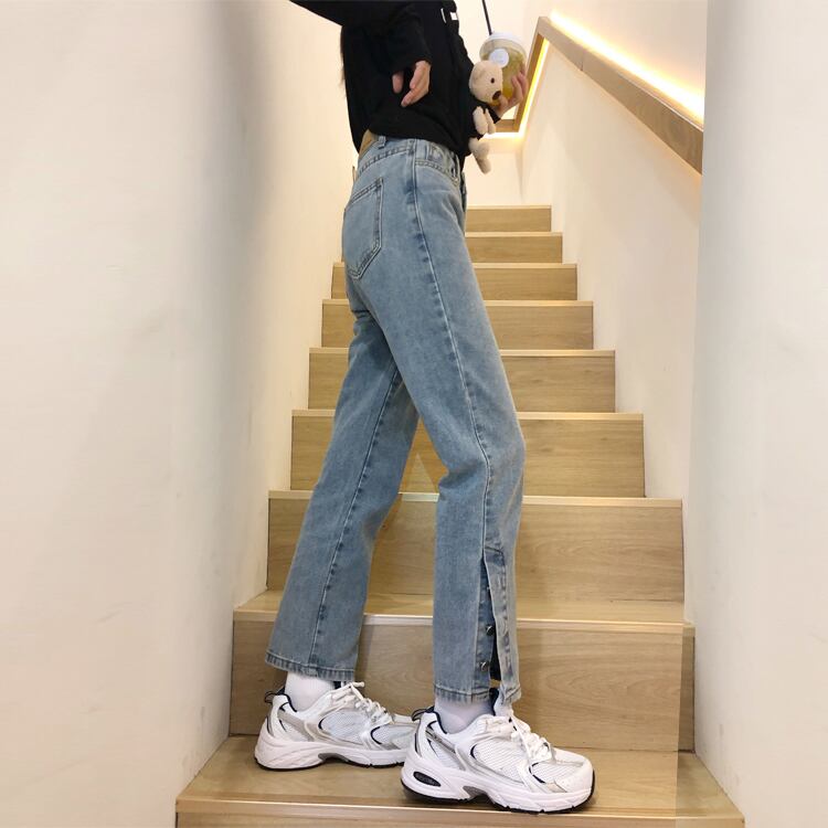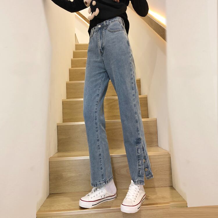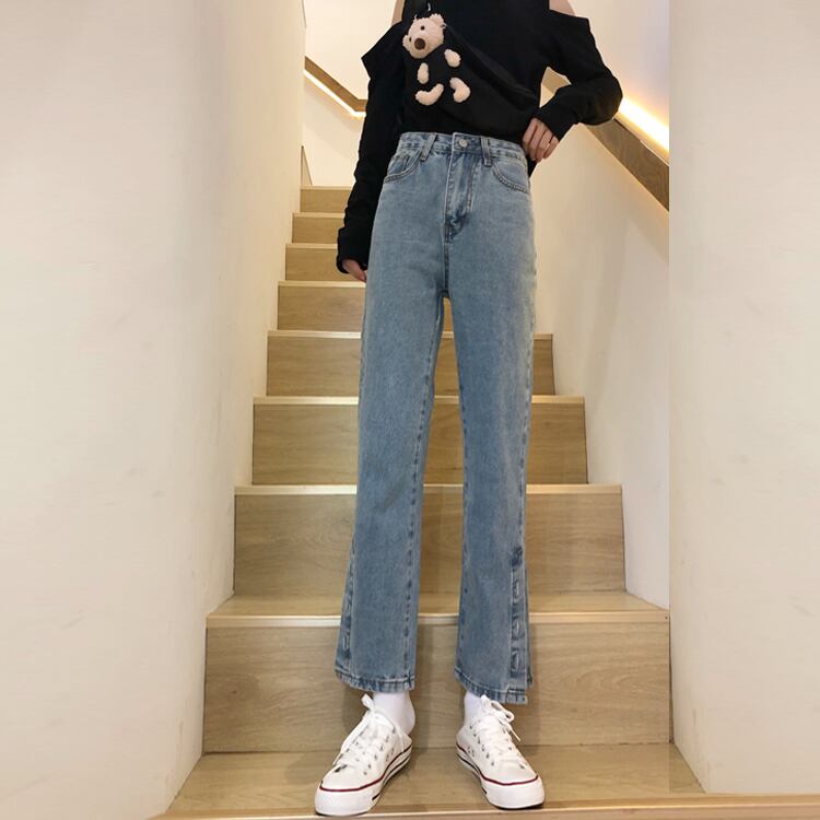 スプリング秋物ハイウェストスリットジーンズ ルーズスタイル薄手パンツ 春物 オータム ウエスト SPM16717752144