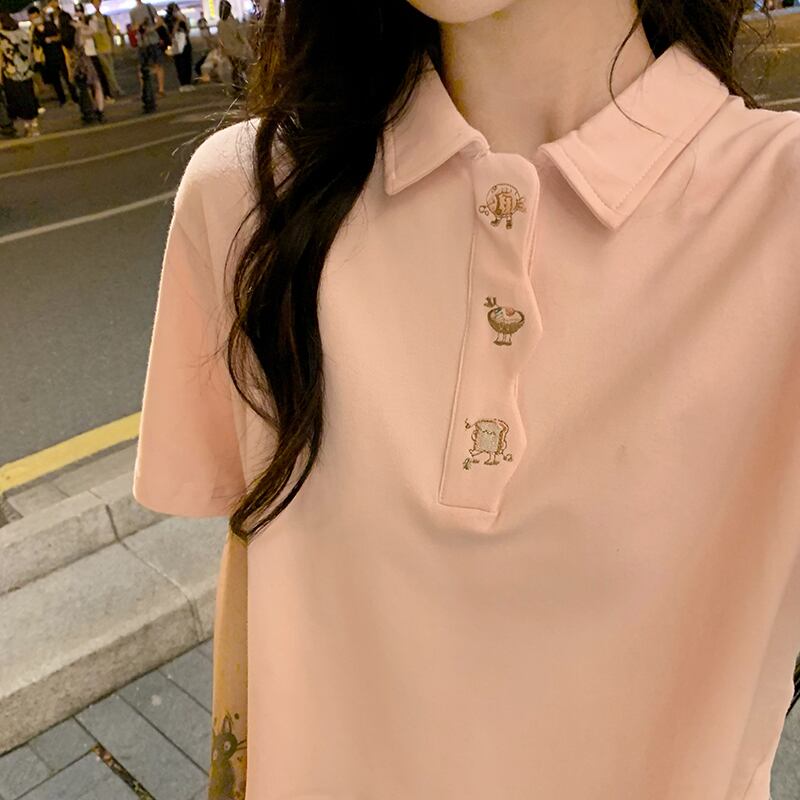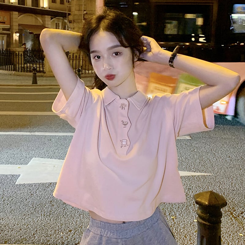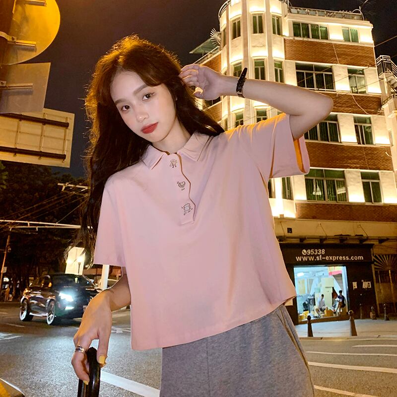 カラーショートTシャツ夏服トップス NEW ピンク コットン 夏物 SYJ3317300448