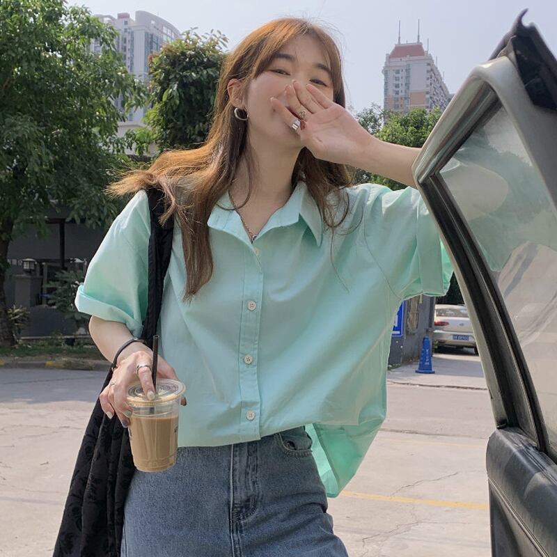 グリーンシャツ スプリングスタンダードトップス レトロ 春物 SYJ89180768175