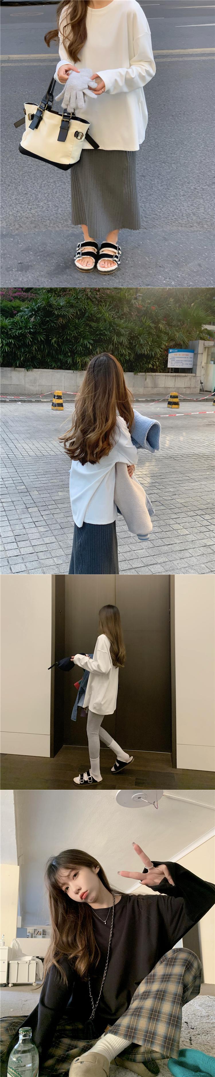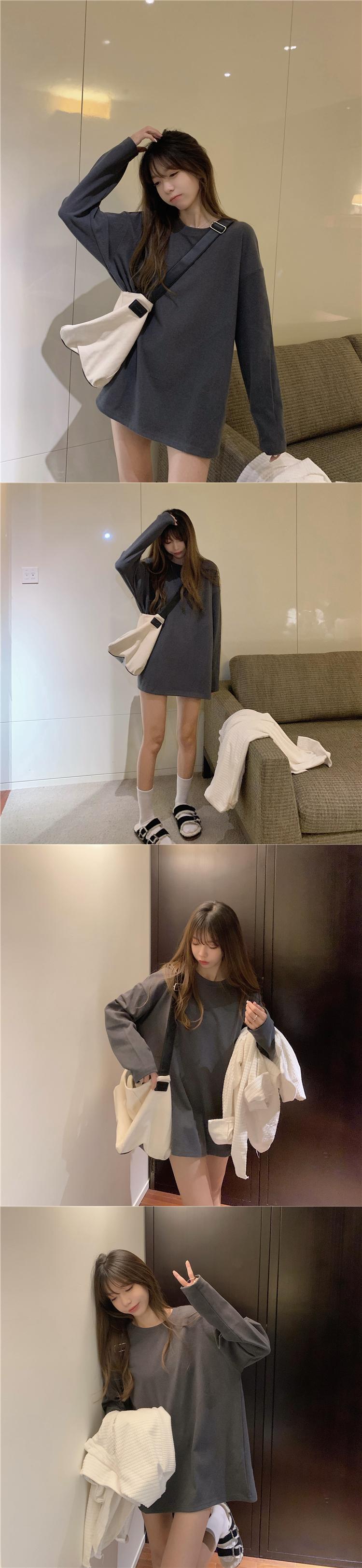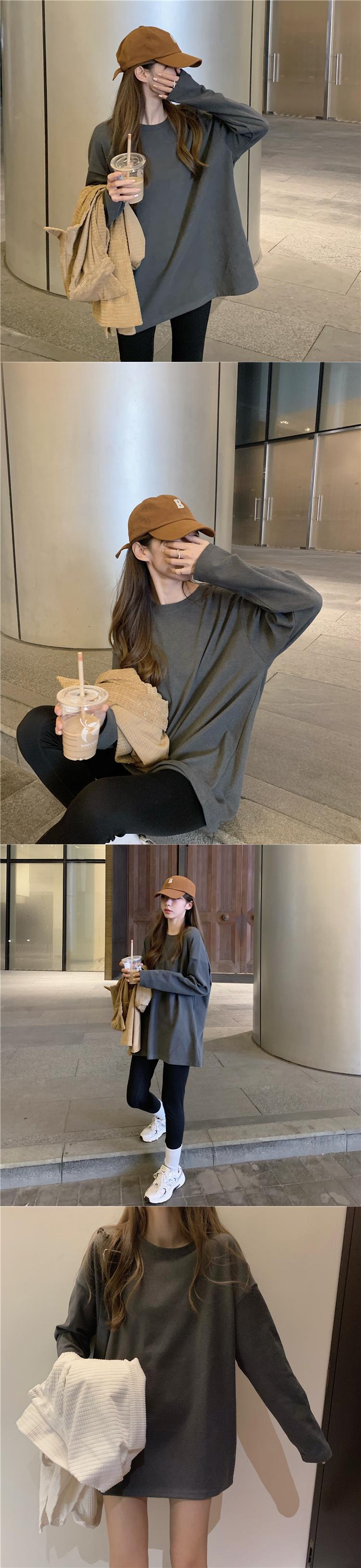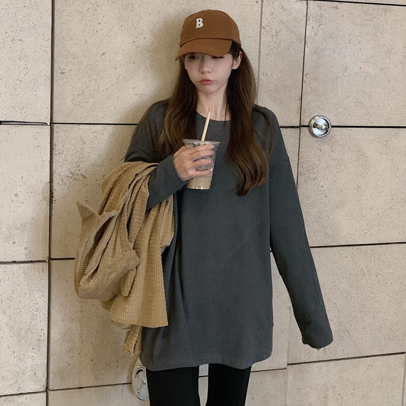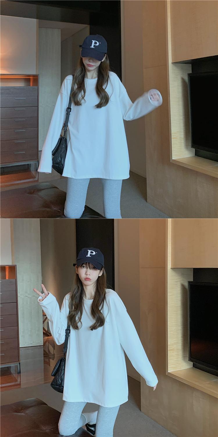 厚みゆったりシャツ スプリング秋物スタイルホワイトTシャツ ロング 春物 オータム 長袖 ミドル丈 SPM43310208217