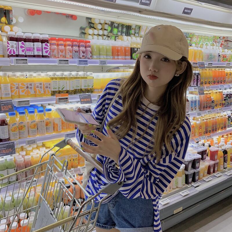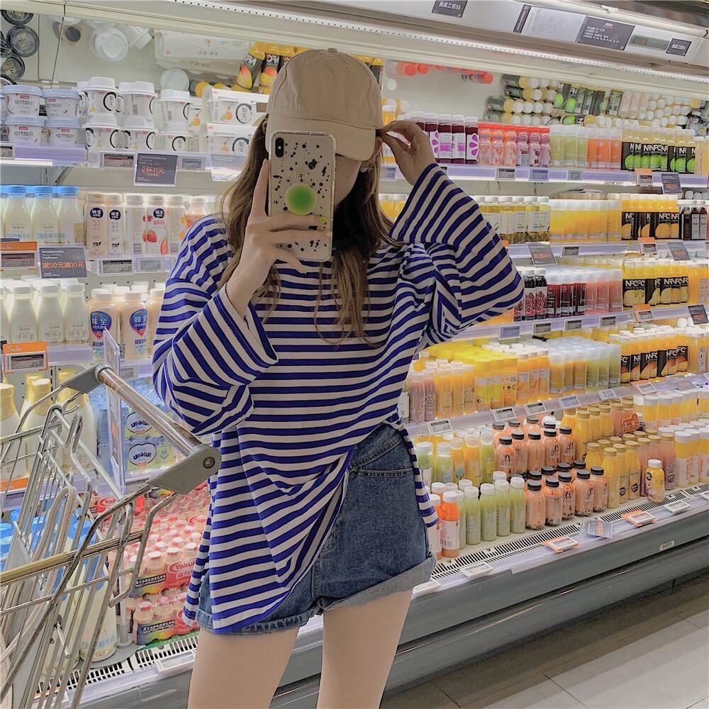 ストライプTシャツスプリング秋物ルーズトップス ロング 春物 オータム 長袖 SYJ48123323458
