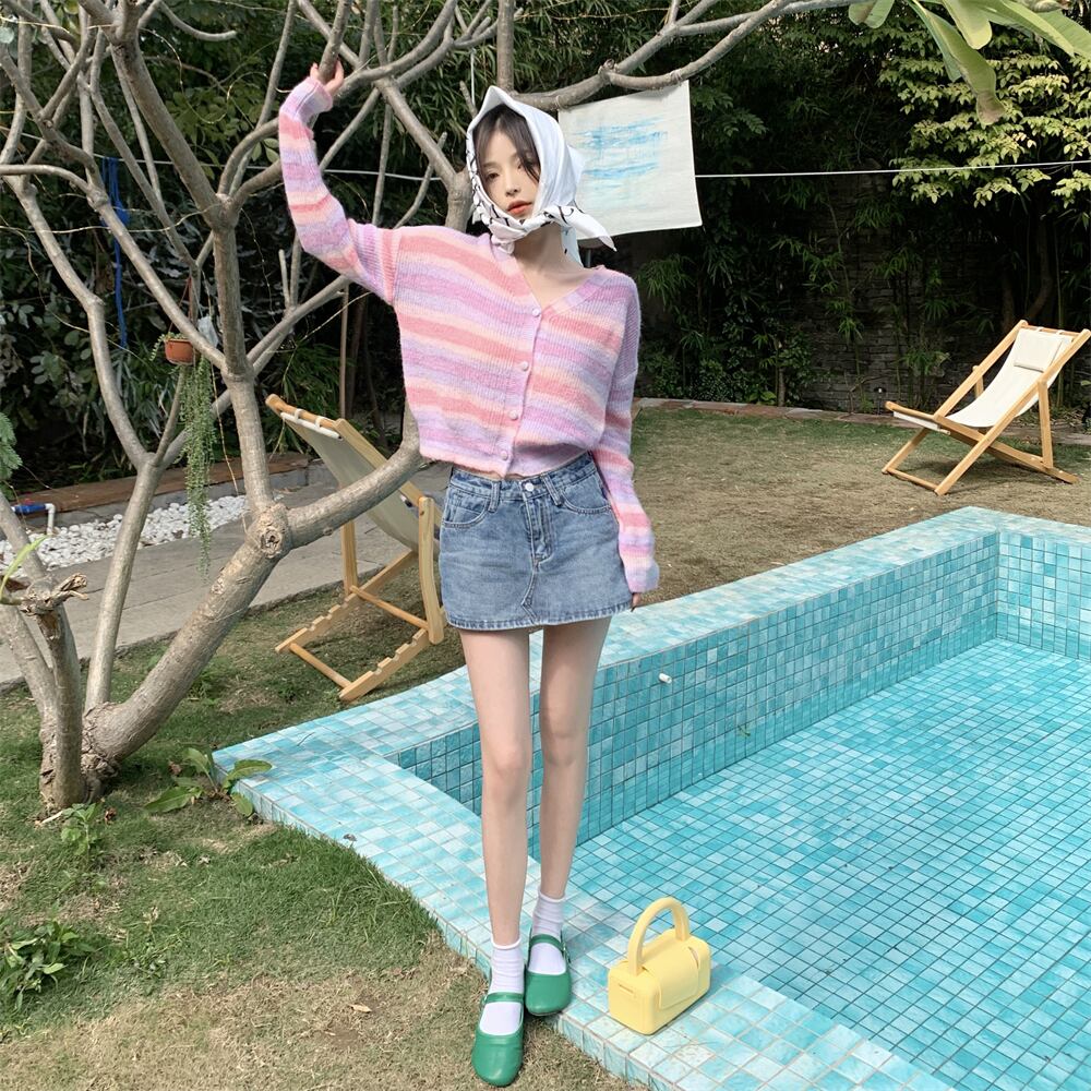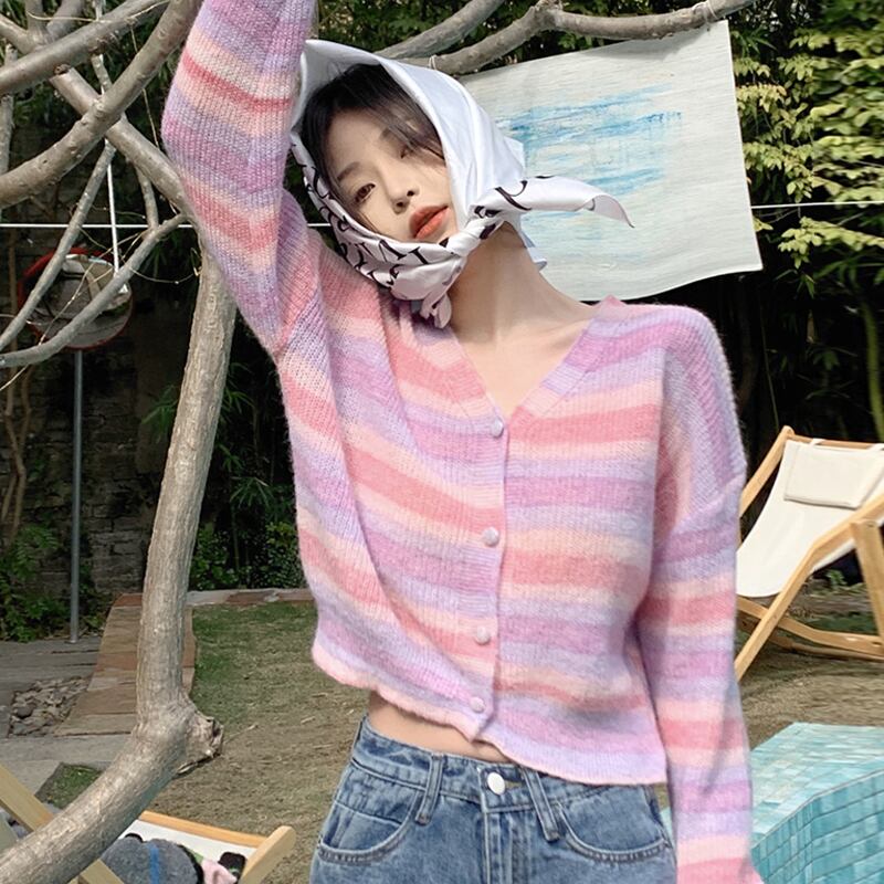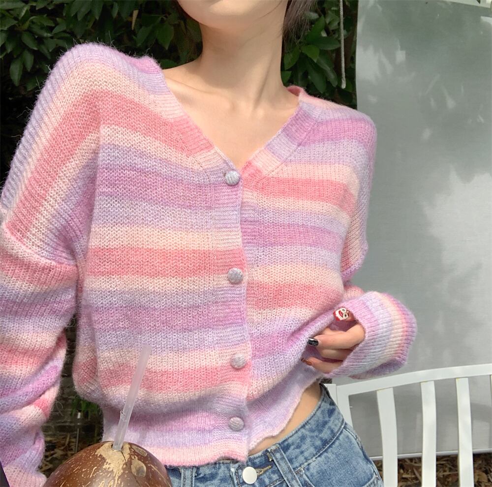 ストライプニットカーディガンVネックトップス スプリング韓国ファッションセーター コート 春物 SPM97886665713