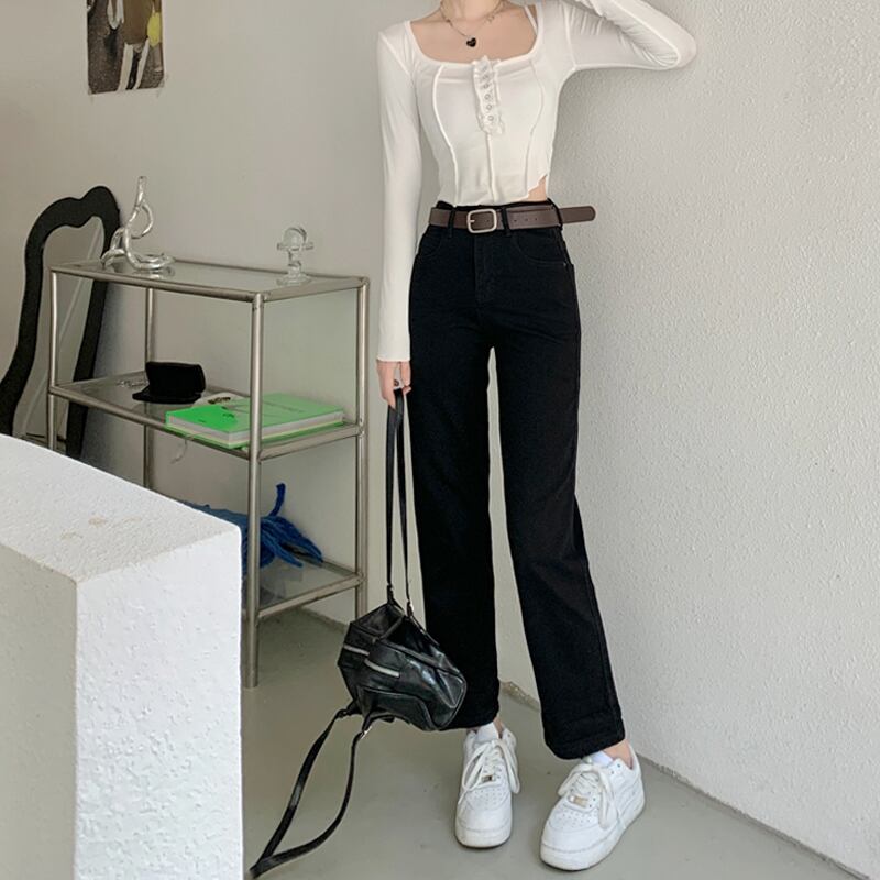 ウェストジーンズ スプリング秋物ルーズワイドレッグパンツ スリム 春物 オータム ワイドパンツ ウエスト SPM65002601813