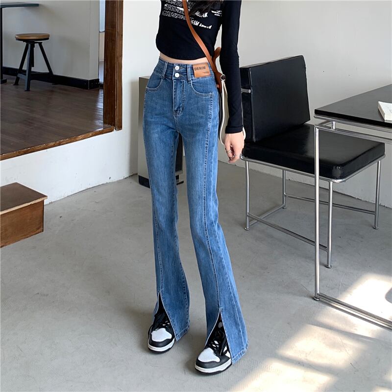 スリットジーンズ レディースパンツ スプリングハイウェストウェスト レッド 春物 ウエスト SYJ47122268209