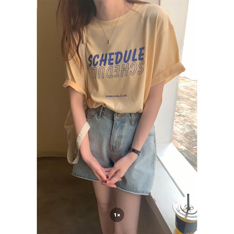 ブラックTシャツシャツ スプリングルーズプリントカジュアルゆったりトップス 春物 MONROE57333734679