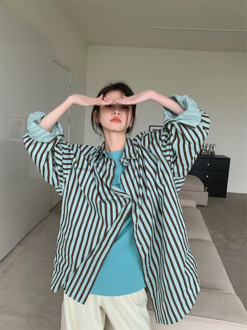 ストライプスタイルシャツ ルーズジャケット スプリングトップス 春物 ボーイズ MONROE69911069325