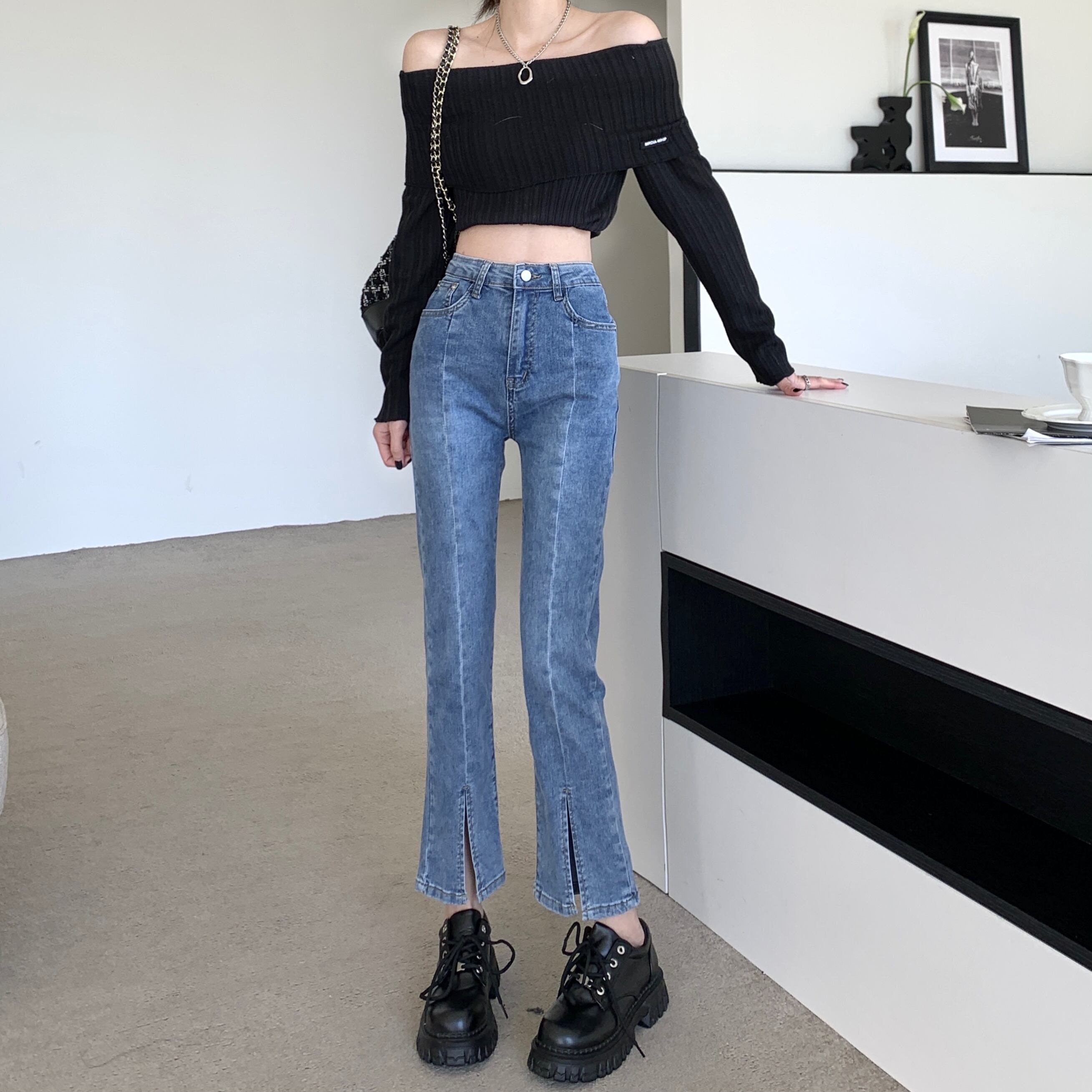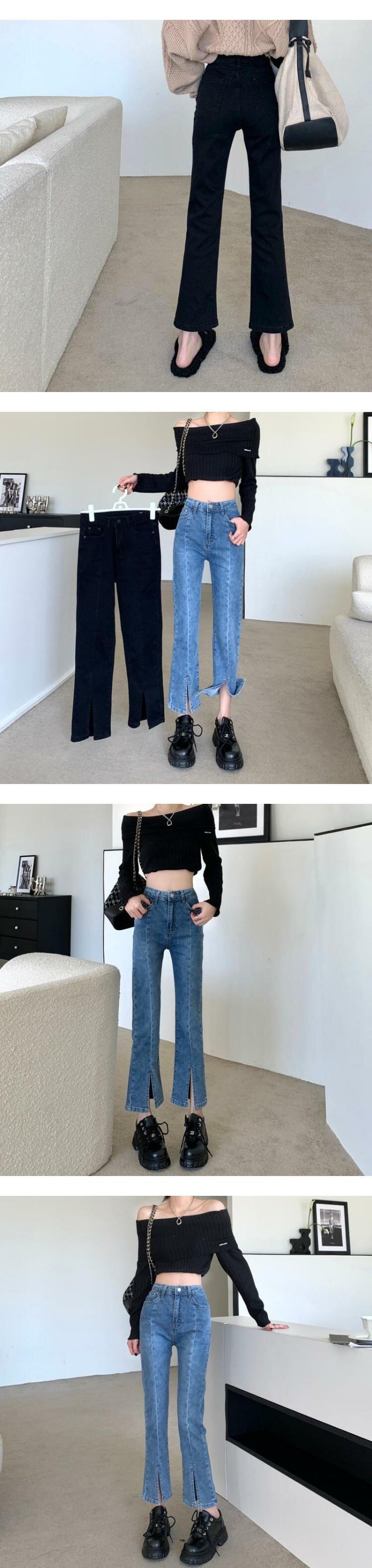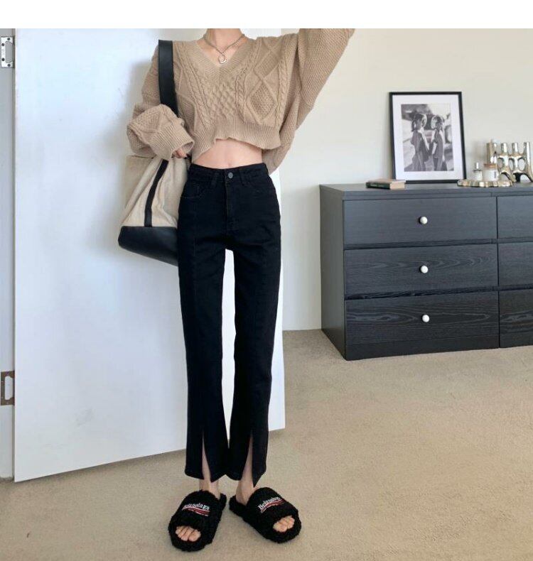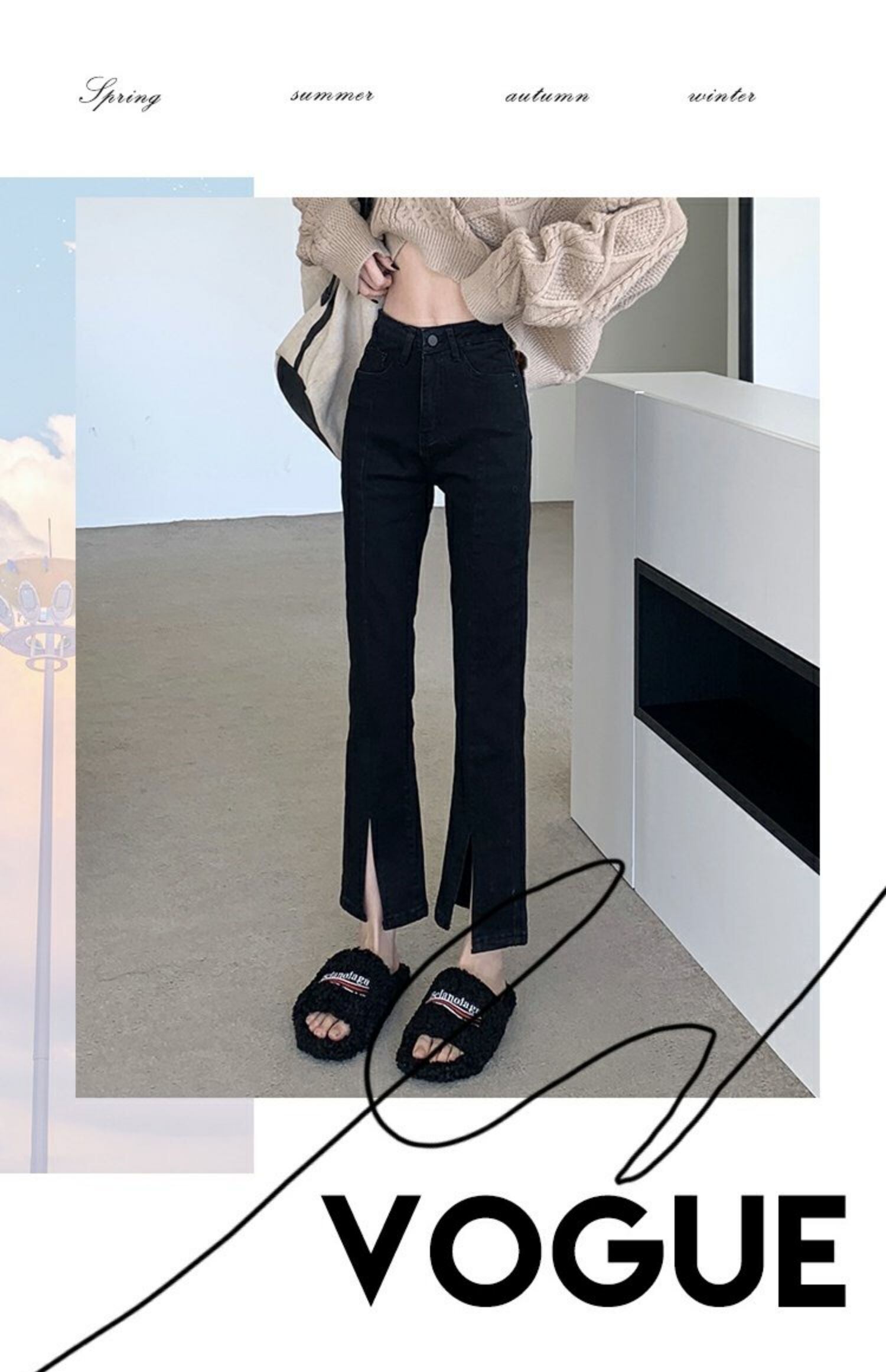 スリットジーンズ ハイウェストウェストスリムブラックパンツ ウエスト MONROE65850727035